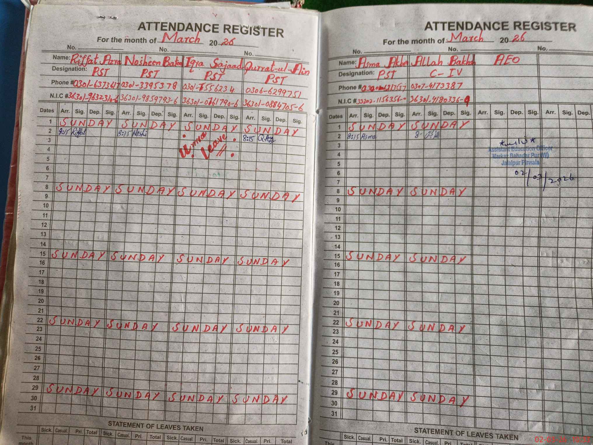 | Name: Ri**** Az**** Designation: (School Headmaster's/Headmistress's) PST Phone/Cell Number: 03**** |