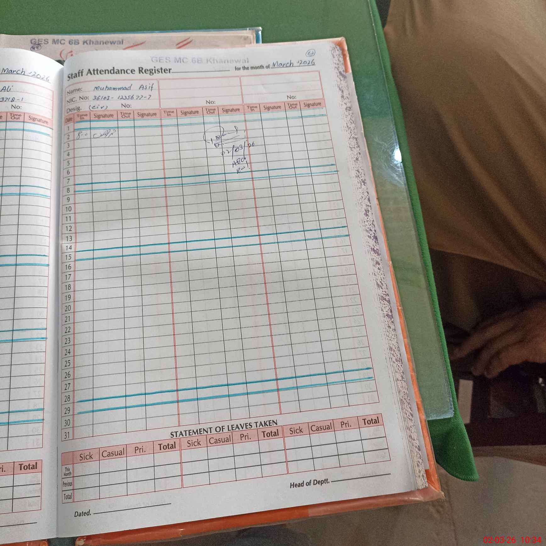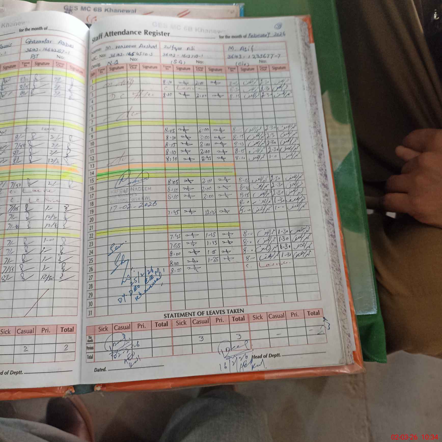 | 36**** | Wa**** Ar**** | NAIB QASID | Regular | 0 | 0 | 31 | 0 | 0 | 0 | 0 | 0 | 0 | Absent (Un-Authorized) |