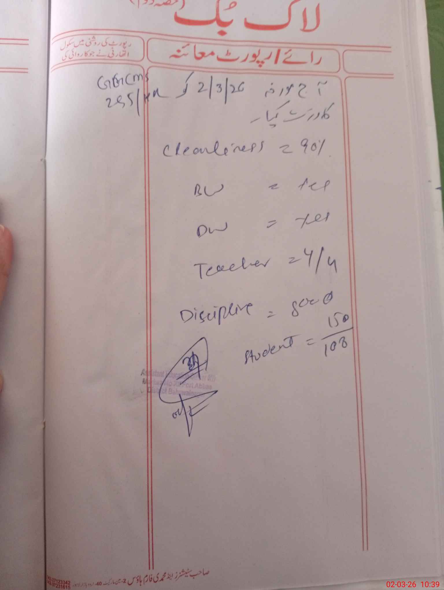| Certified that this School was Inspected by the Undersigned MEA/DMO Today and the Information Stated Above is as Per Record. | |||||