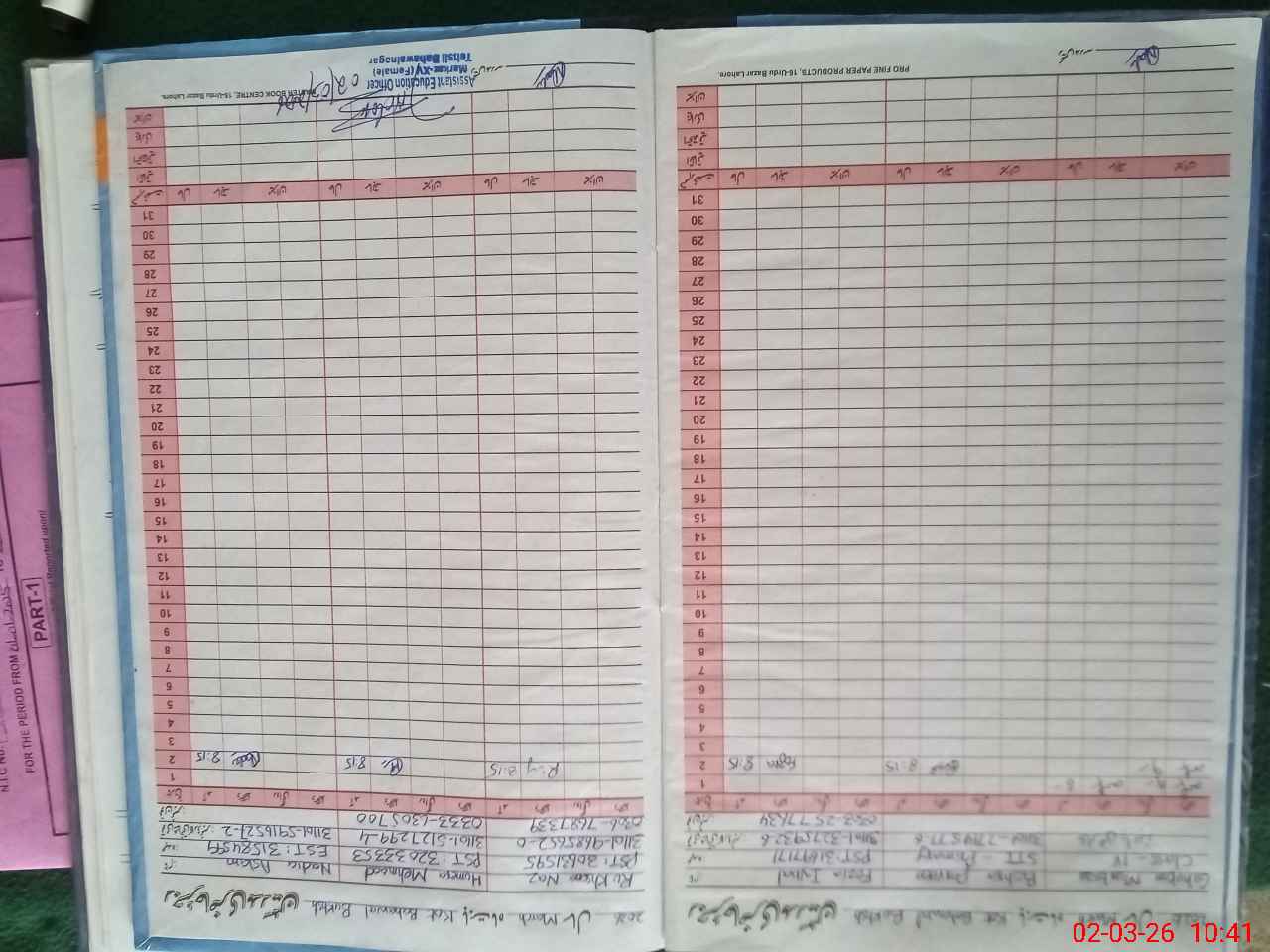 | Name: NA**** AS**** Designation: (School Headmaster's/Headmistress's) EST Phone/Cell Number: 03**** |