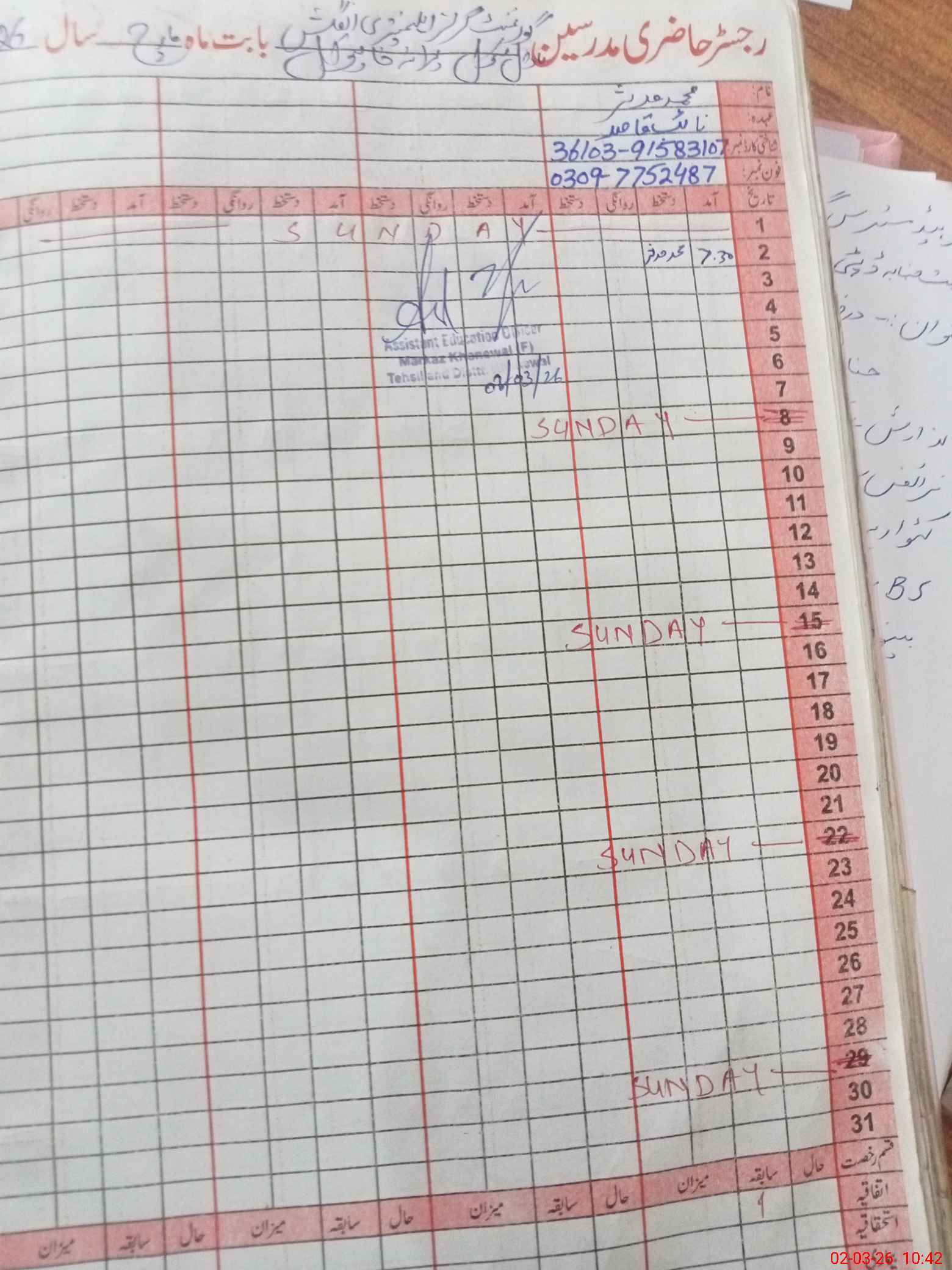 | Name: SA**** KA**** Designation: (School Headmaster's/Headmistress's) S.S.T.(general) Phone/Cell Number: 03**** |