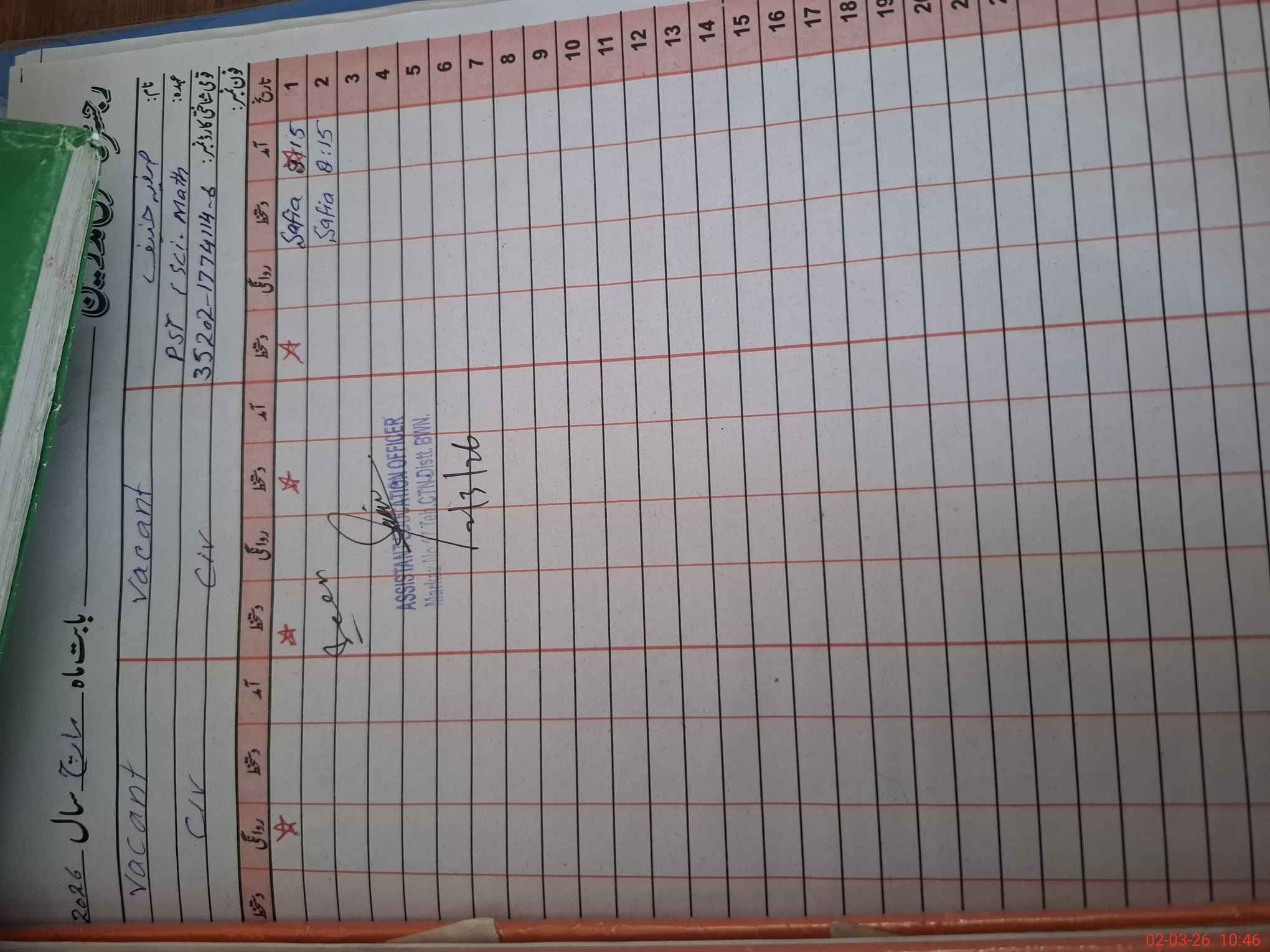 | Name: Na**** Ak**** Designation: (School Headmaster's/Headmistress's) SST Phone/Cell Number: 03**** |