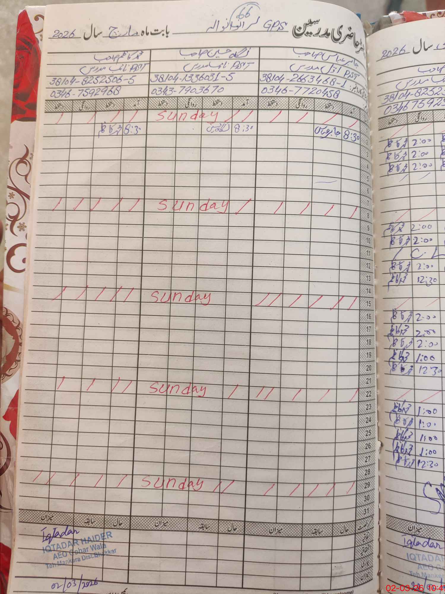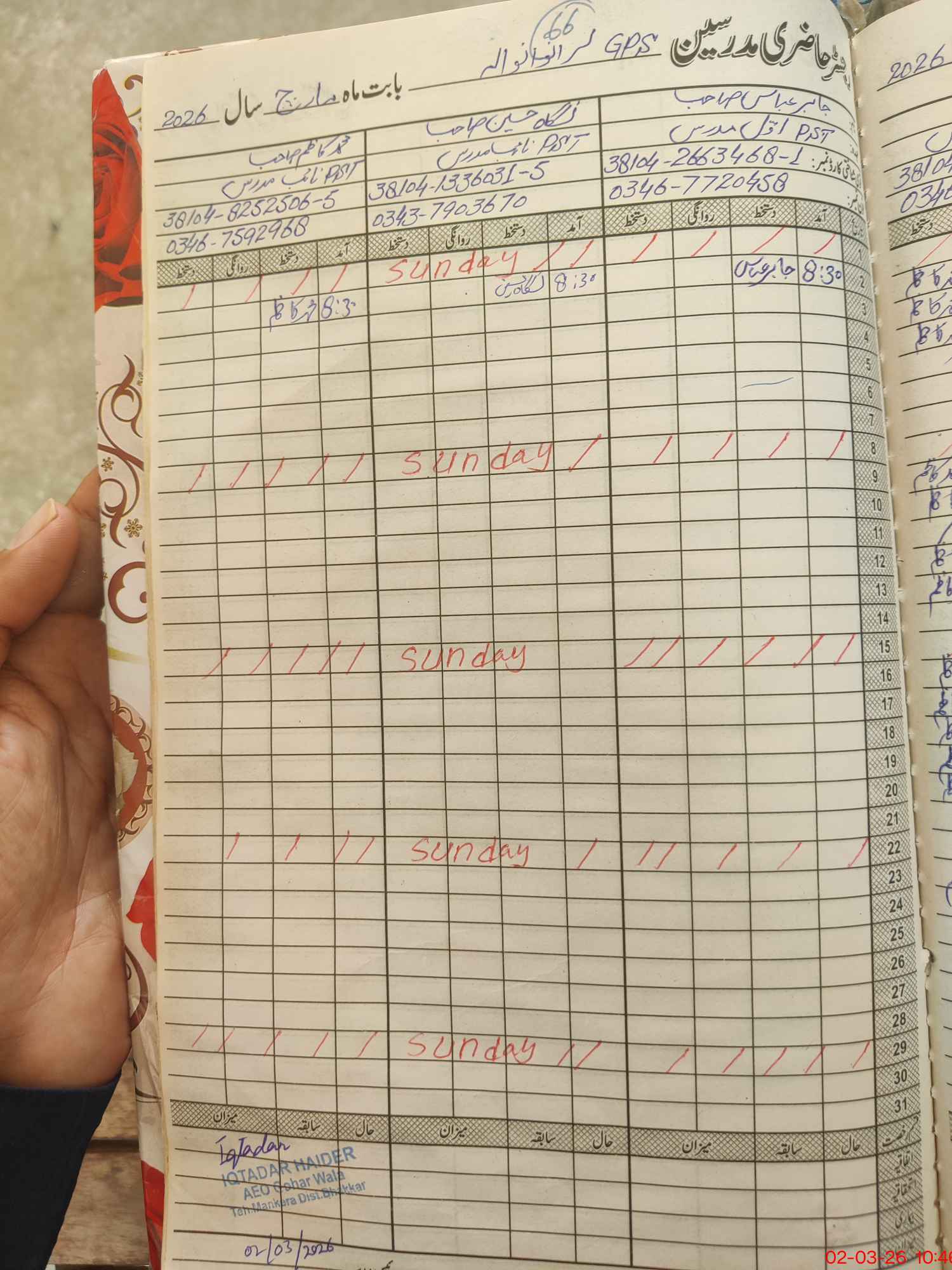 | Name of AEO: | AEO Contact No.: | MEA Phone#: 03**** | ||