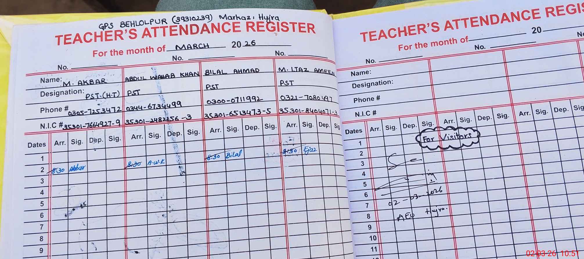 | Name: Mu**** Ak**** Designation: (School Headmaster's/Headmistress's) PTC/ Phone/Cell Number: 03**** |