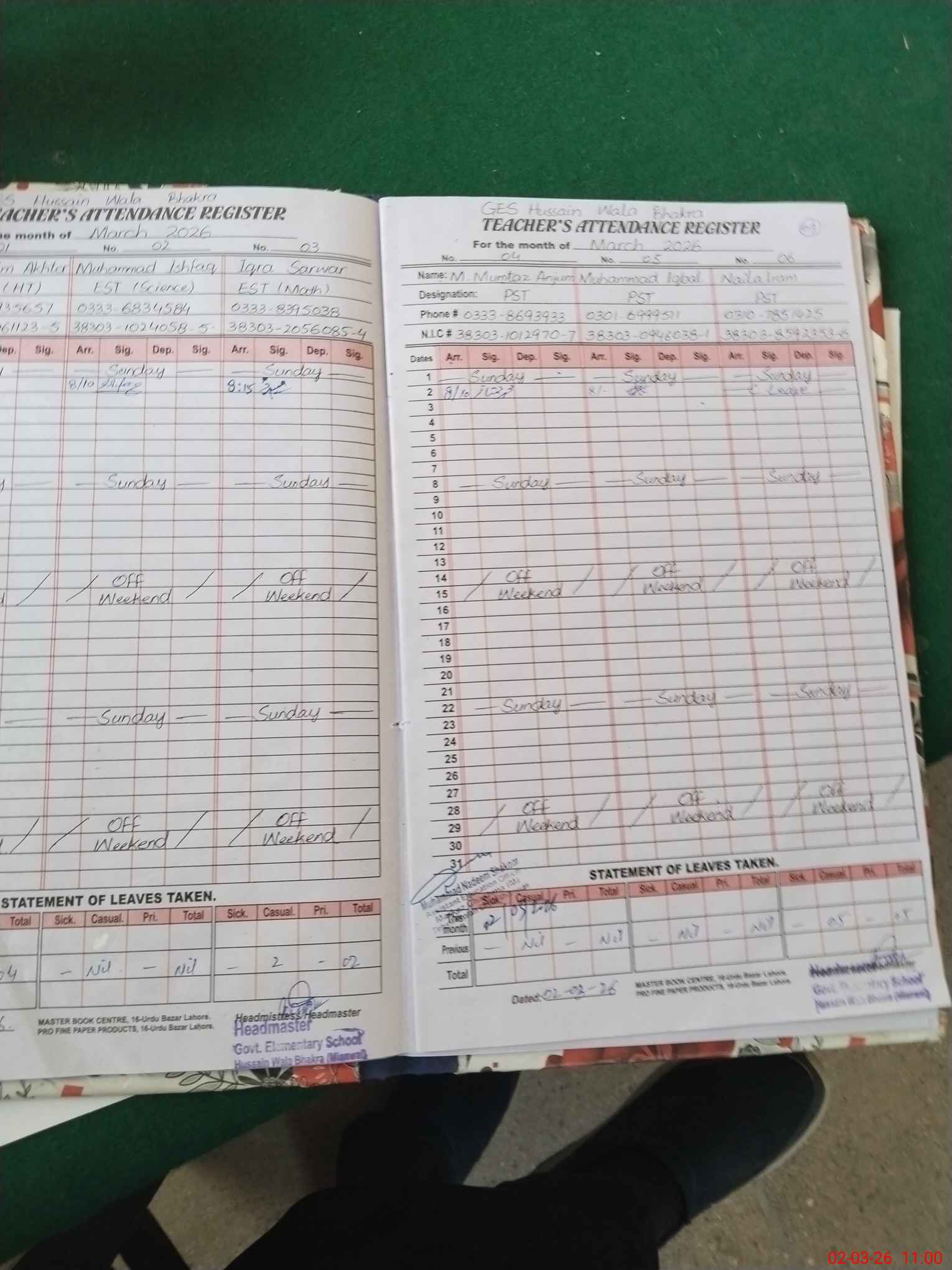 | Name: Mu**** Wa**** Designation: (School Headmaster's/Headmistress's) EST ( Arts Phone/Cell Number: 03**** |