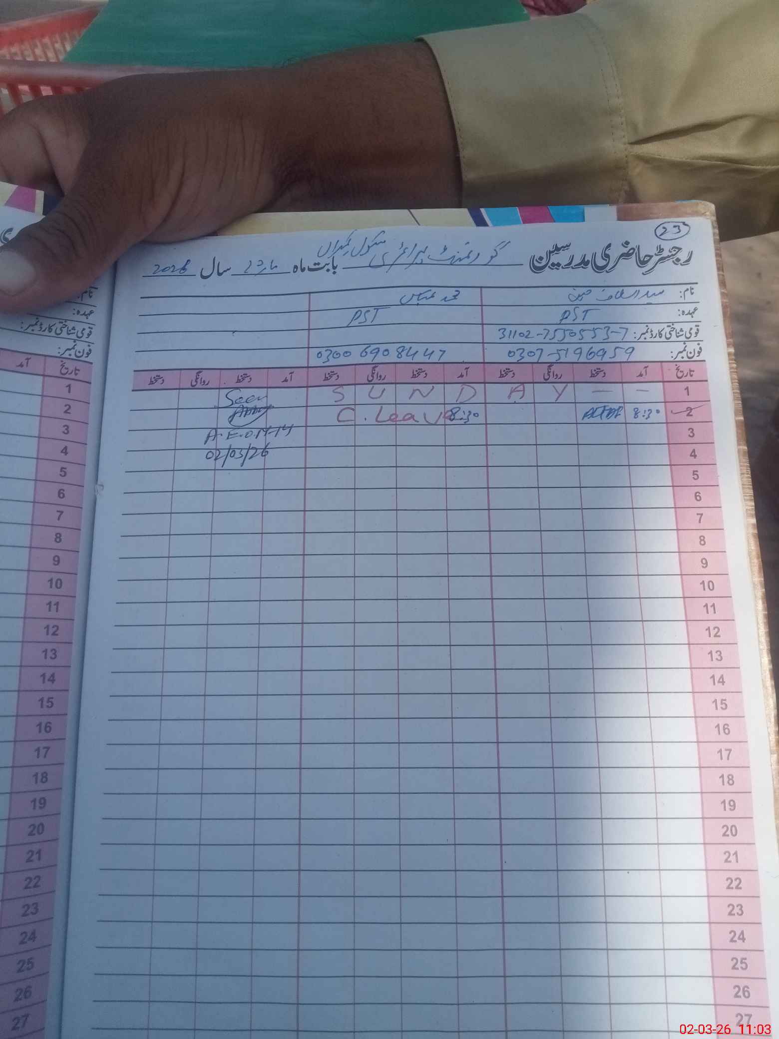 | Name: Sy**** Al**** Hu**** Designation: (School Headmaster's/Headmistress's) ESE Phone/Cell Number: 03**** |