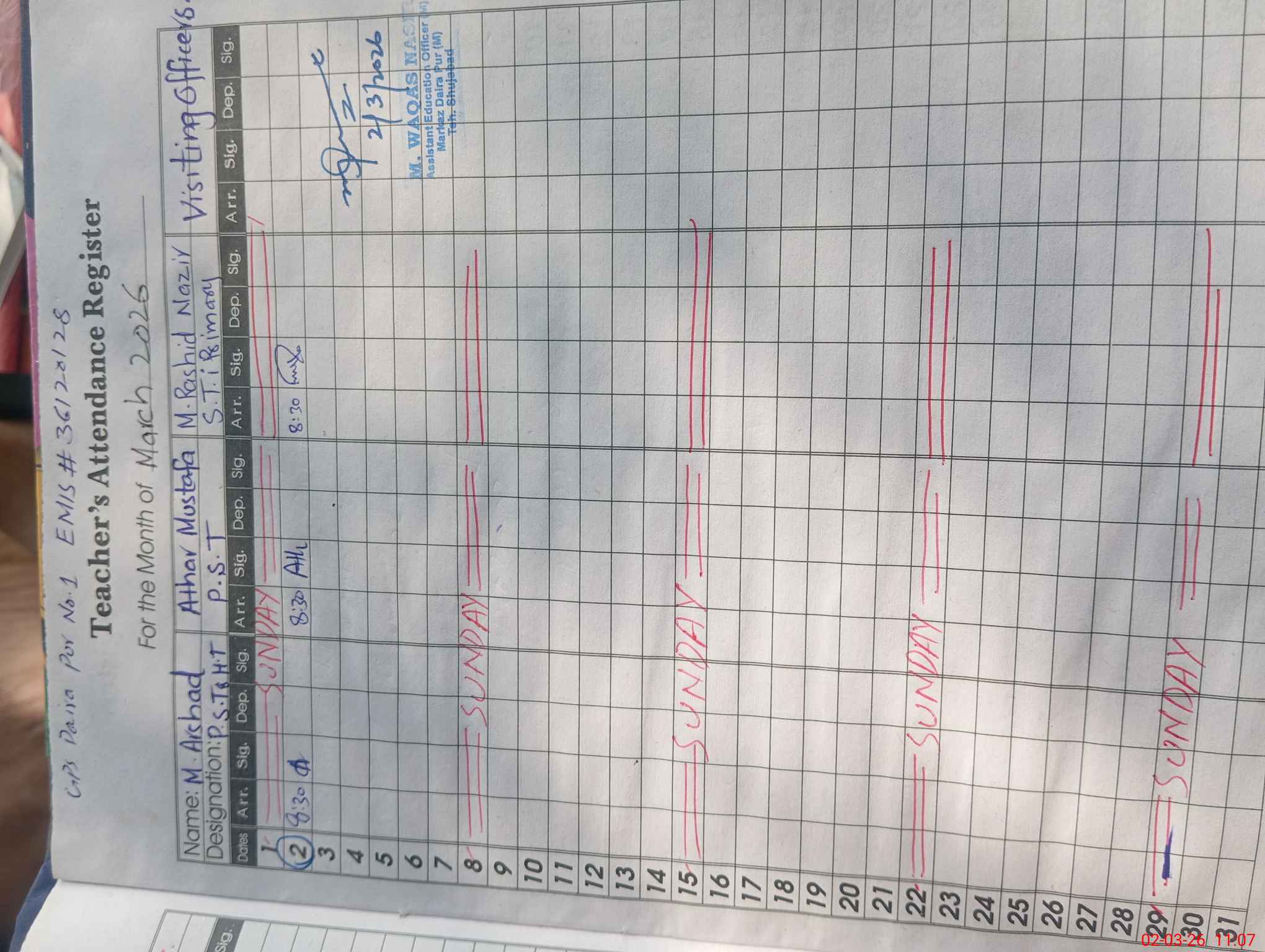 | EMIS Code: 36120128 | Name of School: GPS DAIRA PUR 1 P/O SIKANDARABAD SHUJABAD | |||
