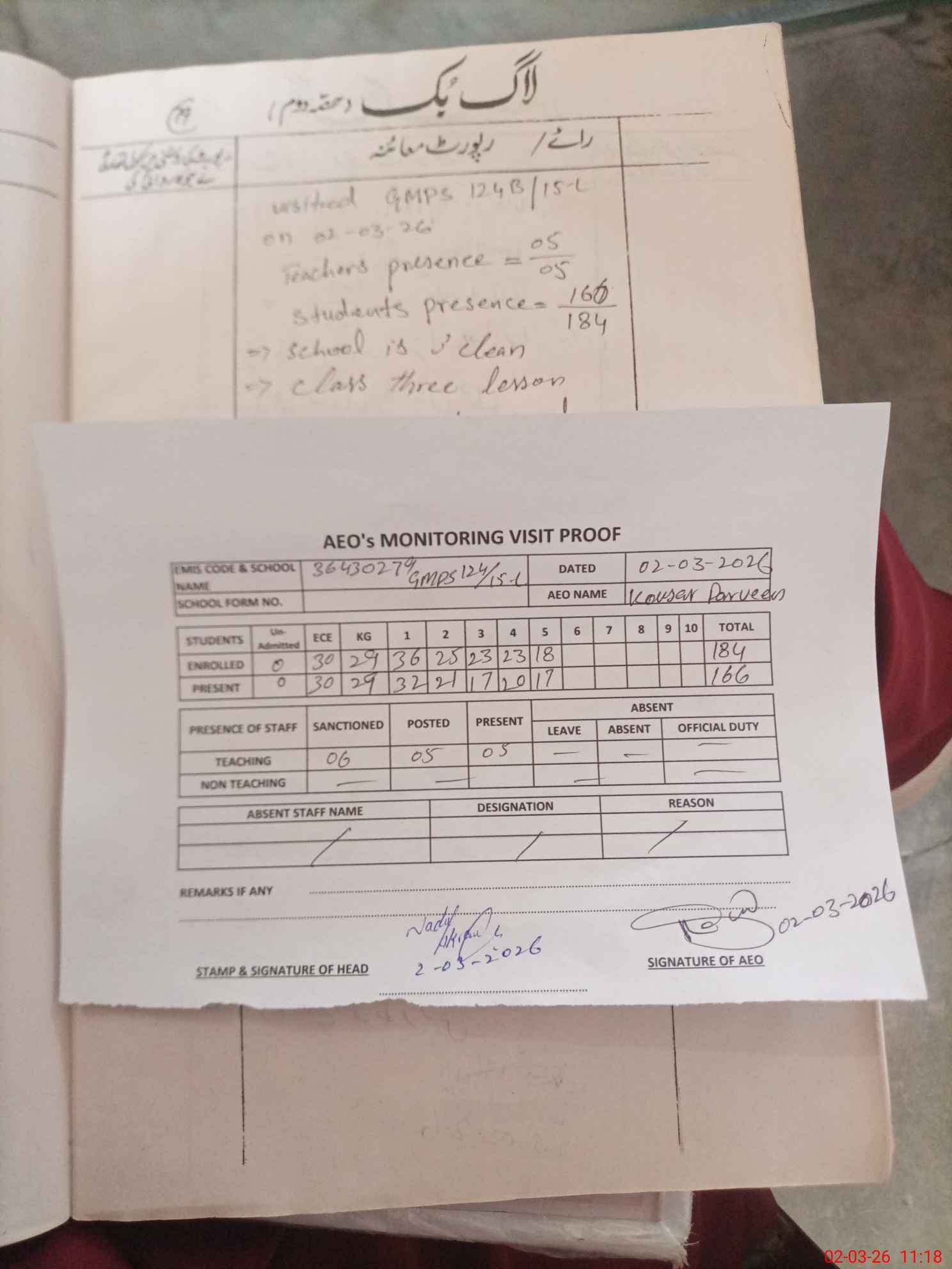 | Attendance Register | Head Teacher | MEA with School | Visit Proof |