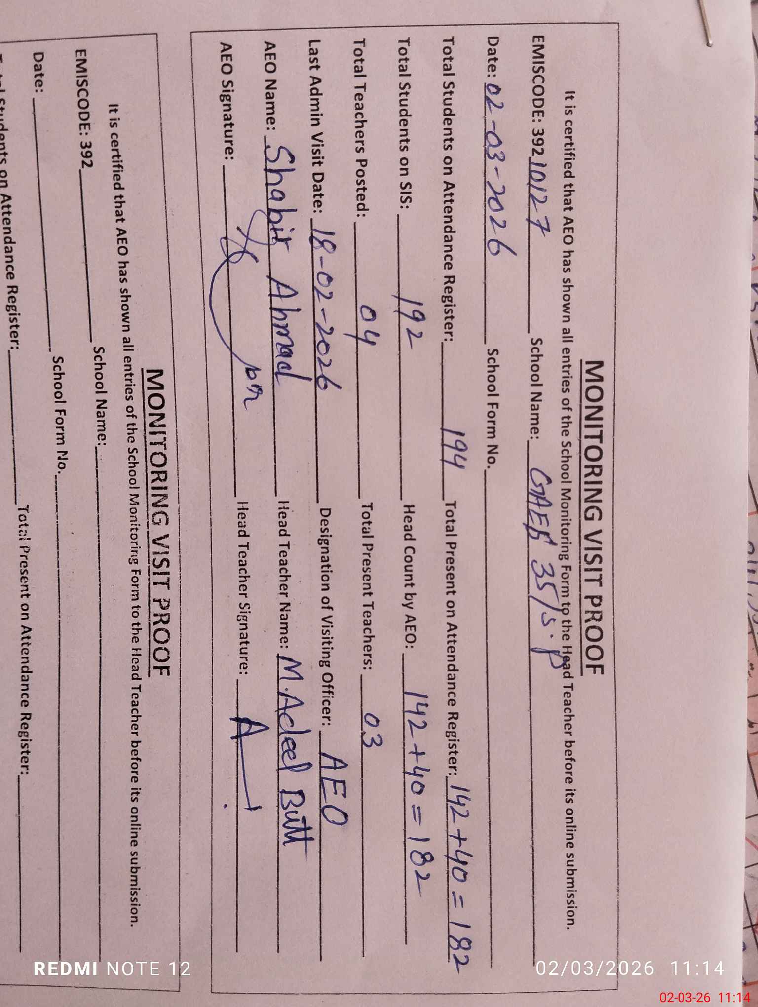 | EMIS Code: 39210127 | Name of School: GPS 35 SP | |||