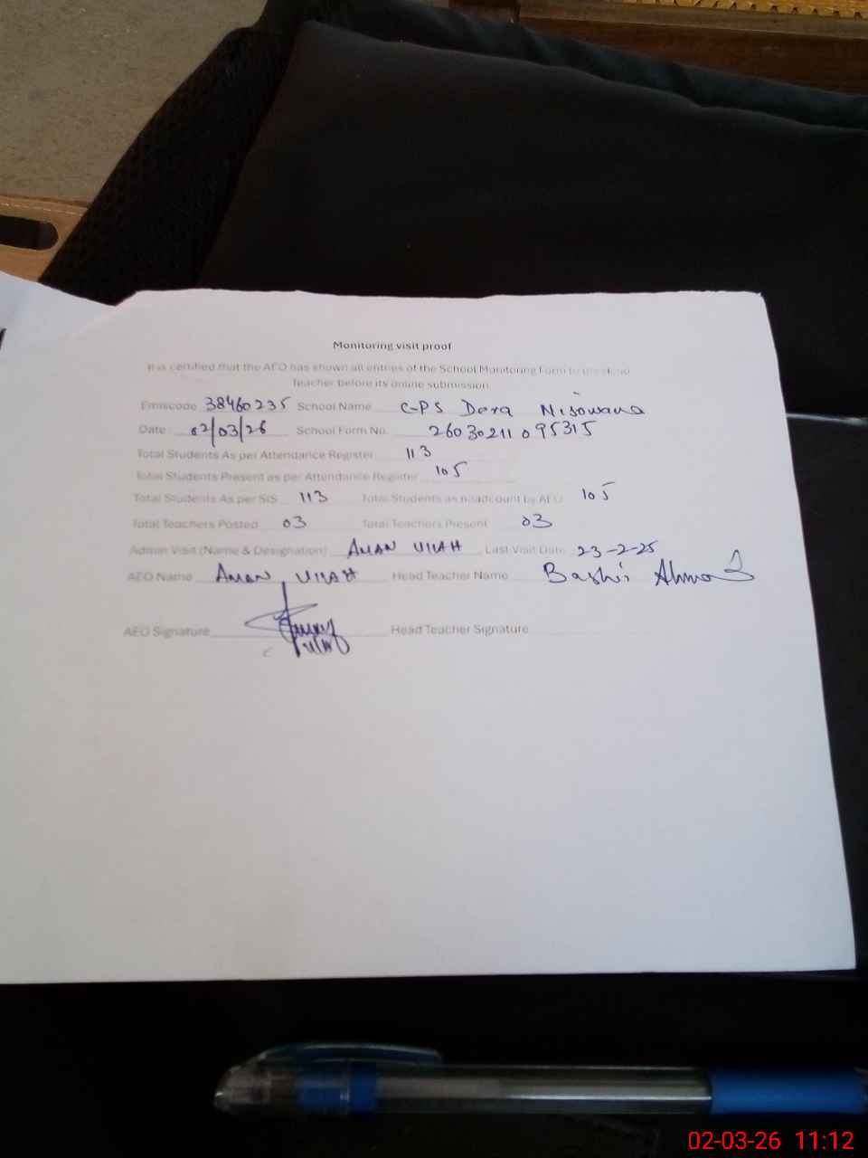 | Attendance Register | Head Teacher | MEA with School | Visit Proof |