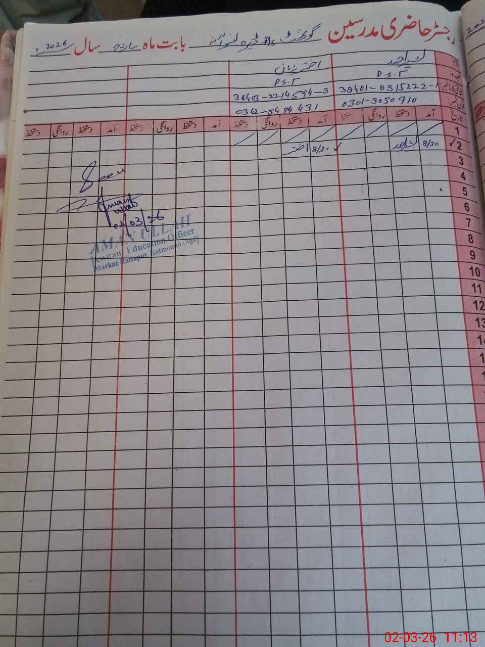 | Name: BA**** AH**** Designation: (School Headmaster's/Headmistress's) PST Phone/Cell Number: 03**** |
