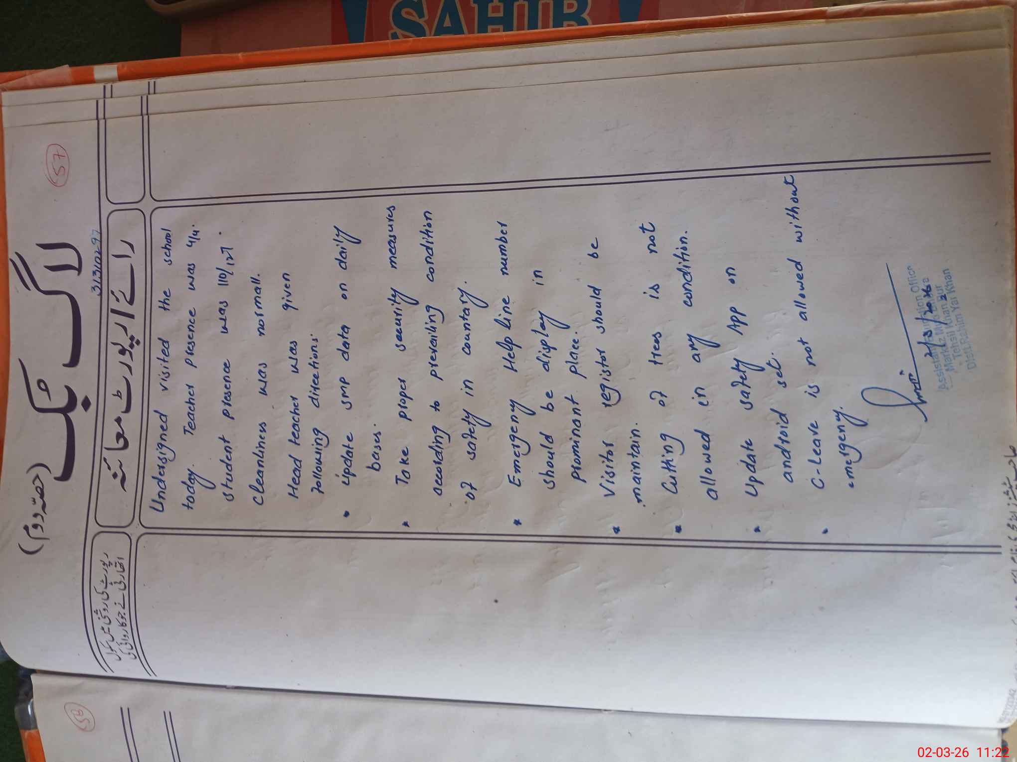 | Remarks (Use Separate Page if Required): Over all a good environment for educational activities was observed. | |||||