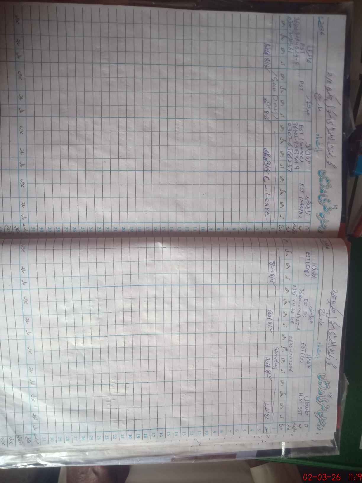 | Name: HA**** KH**** Designation: (School Headmaster's/Headmistress's) SST (GENERAL ) Phone/Cell Number: 03**** |