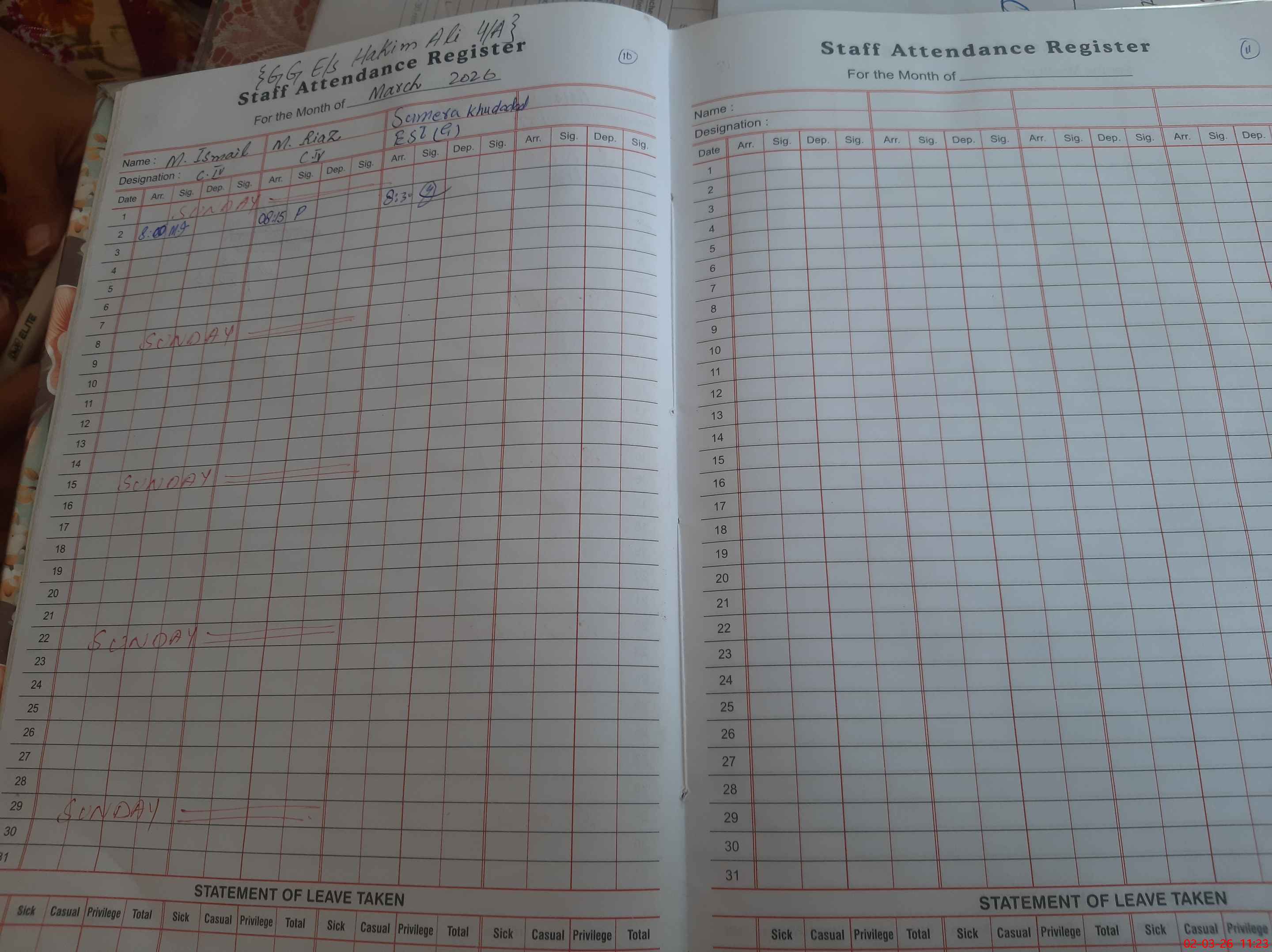 | CNIC | Full Name | Designation | R/C | Absence During Last Calender Month |