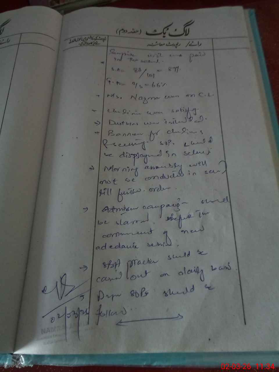 | Attendance Register | Head Teacher | MEA with School | Visit Proof |