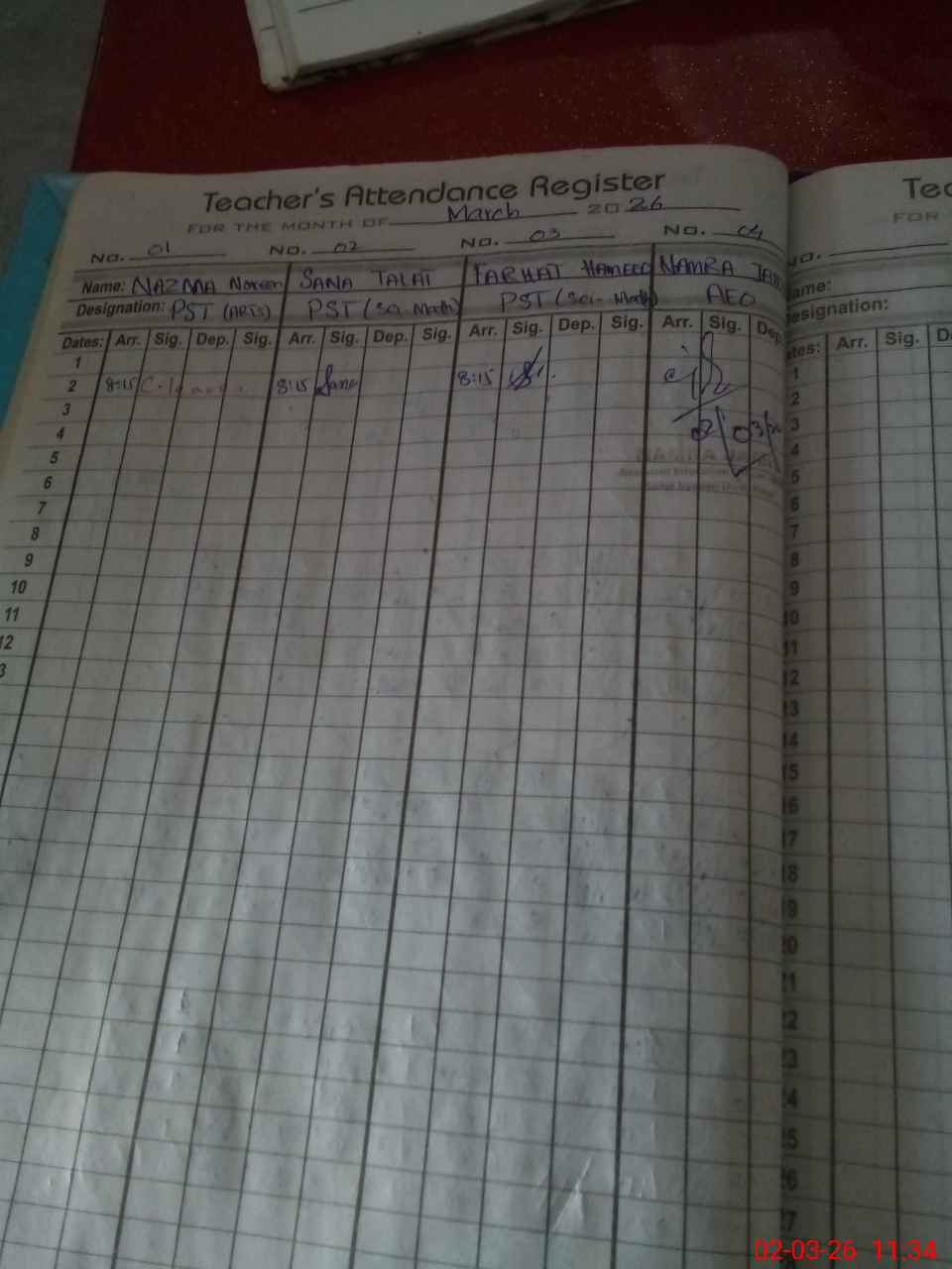 | Monitoring Date: 02-03-2026 | Start Time: 02-03-2026 11:13 AM | End Time: 02-03-2026 11:35 AM | Name of MEA: NA**** JA**** | |