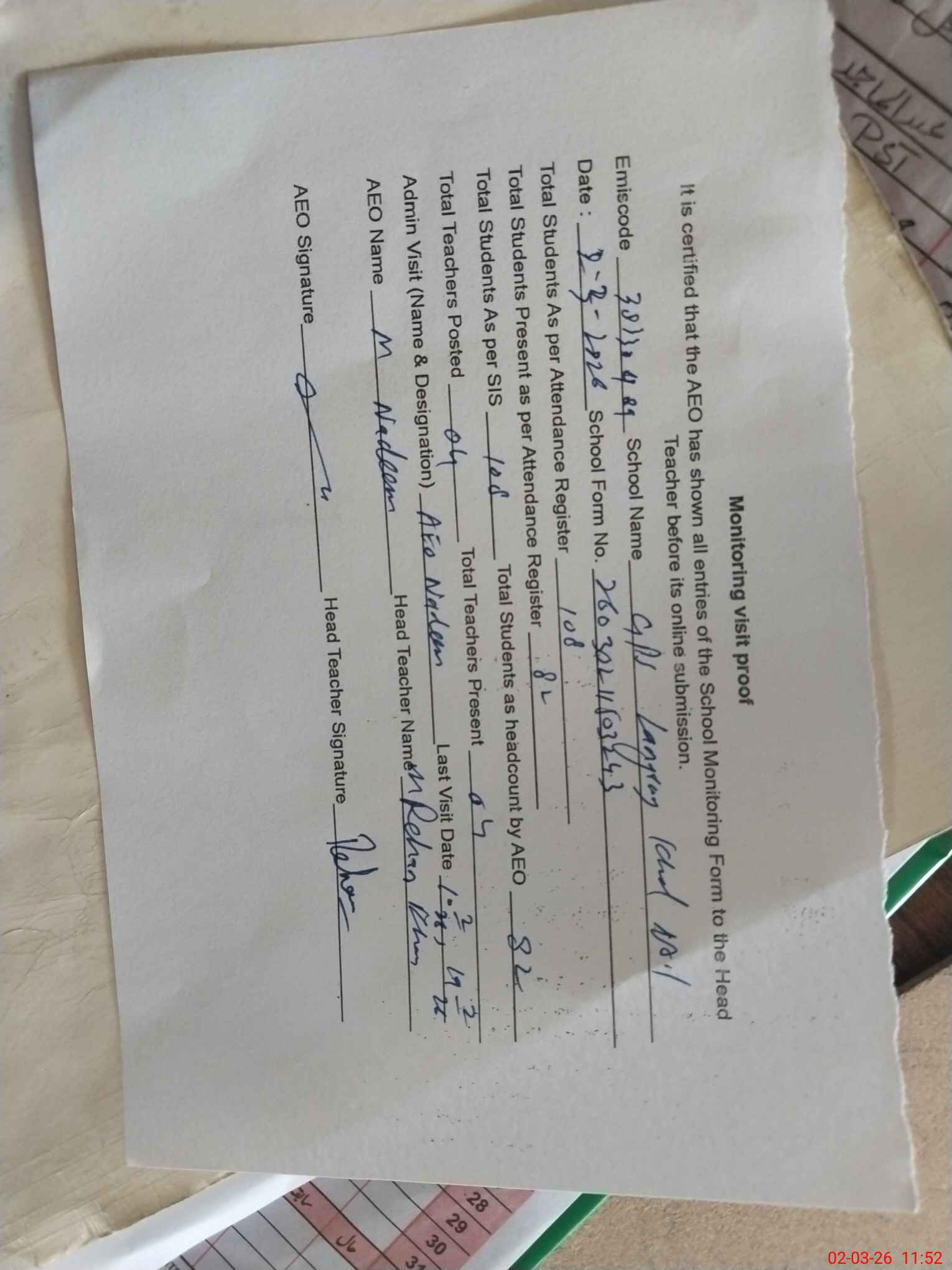 | EMIS Code: 38330489 | Name of School: GPS LANGRAY KHEL NO. 1 | |||
