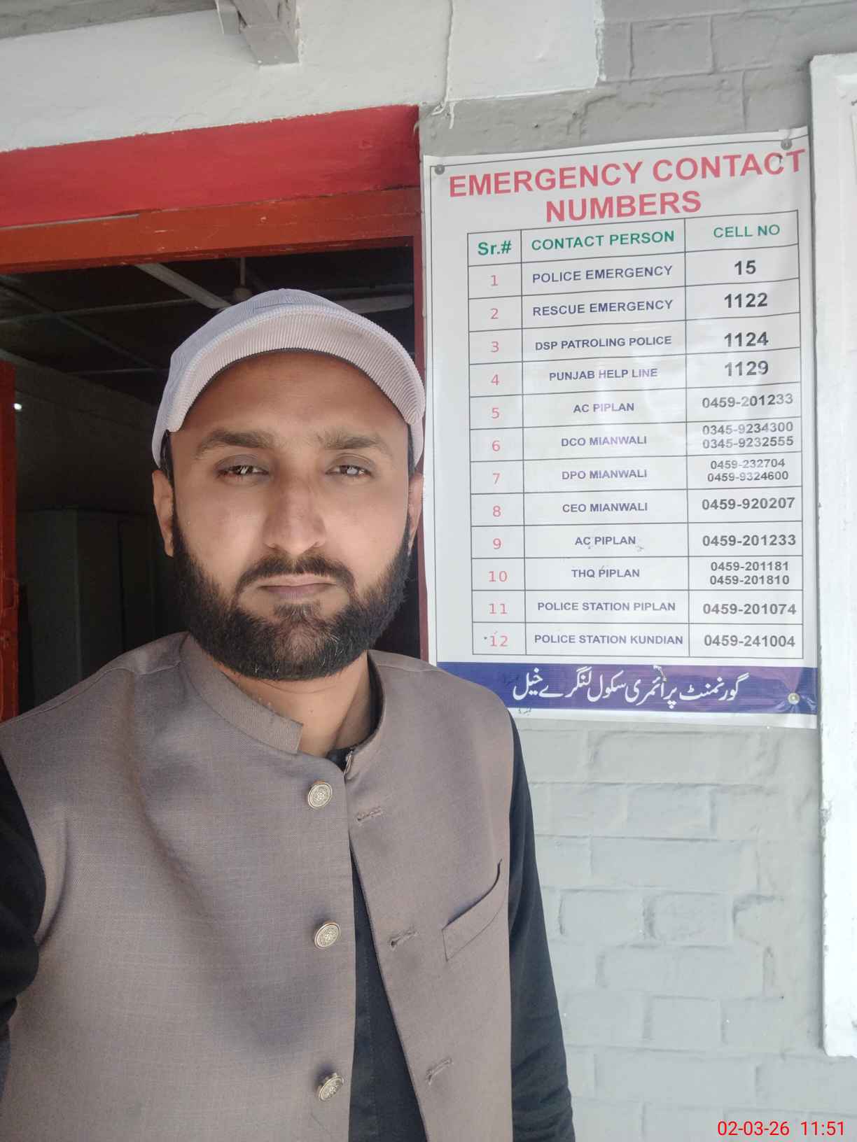 | District: MIANWALI | Tehsil: PIPLAN | Markaz: CHASHMA BARRAGE EAST-MALE | Level: Primary | |
