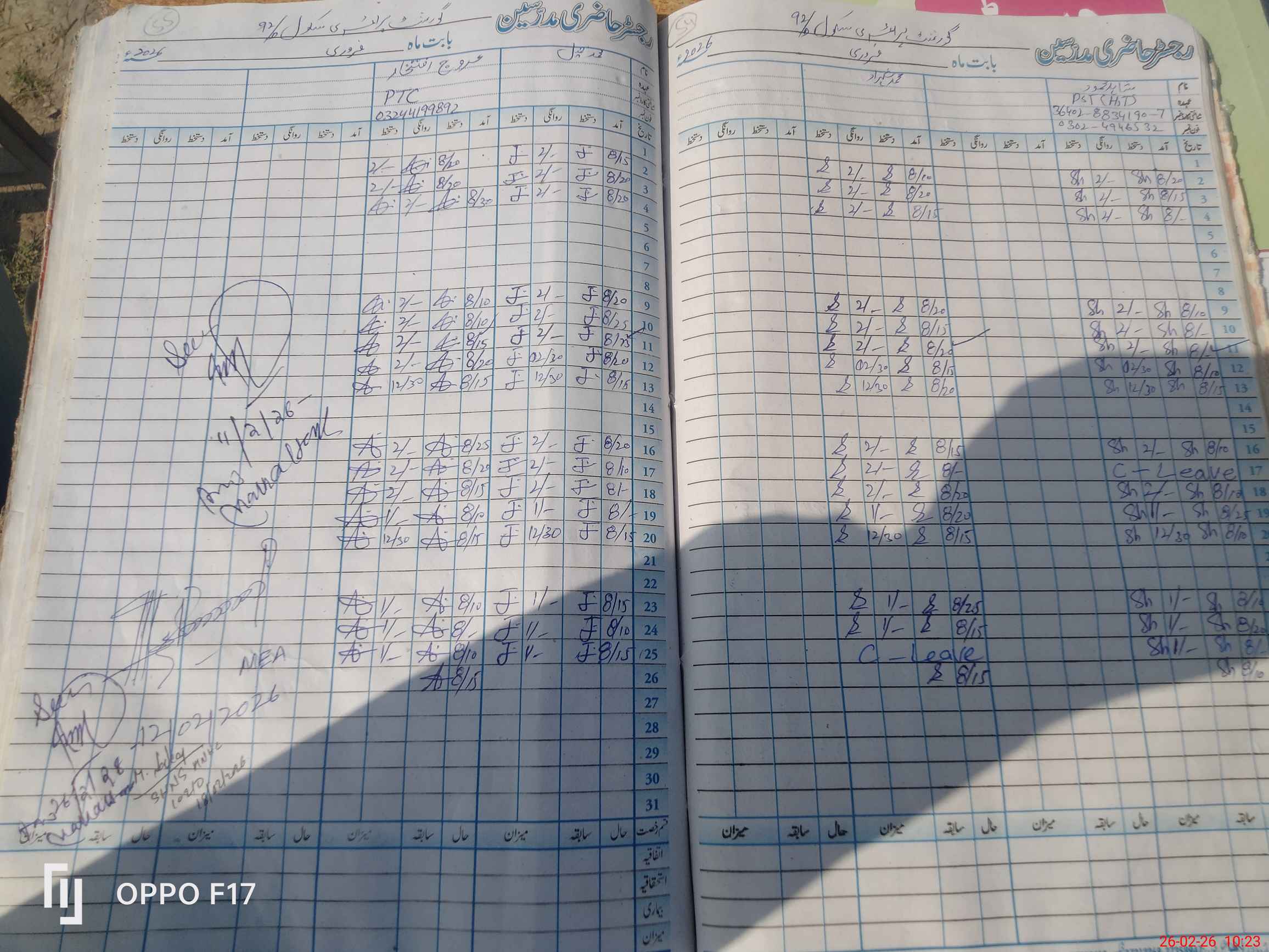 | Name: SH**** ME**** Designation: (School Headmaster's/Headmistress's) PST Phone/Cell Number: 03**** |