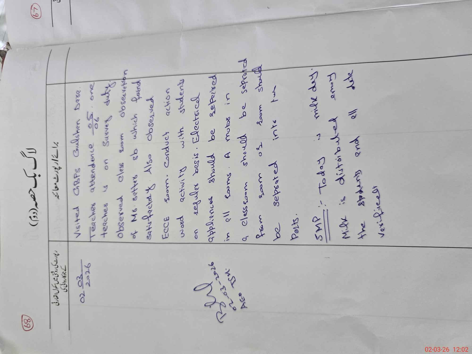 | Certified that this School was Inspected by the Undersigned MEA/DMO Today and the Information Stated Above is as Per Record. | |||||