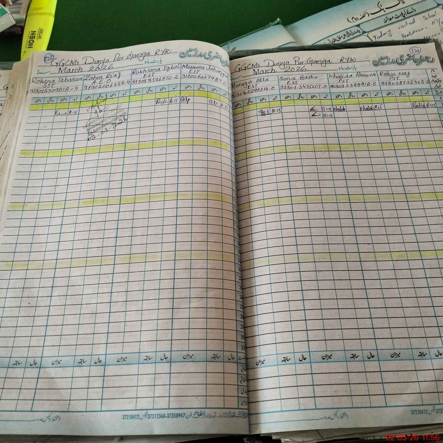 | CNIC | Full Name | Designation | R/C | Absence During Last Calender Month |
