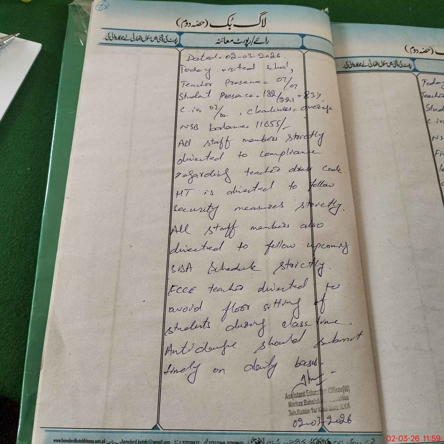 | Monitoring Date: 02-03-2026 | Start Time: 02-03-2026 11:31 AM | End Time: 02-03-2026 11:59 AM | Name of MEA: Za**** Ri**** | |