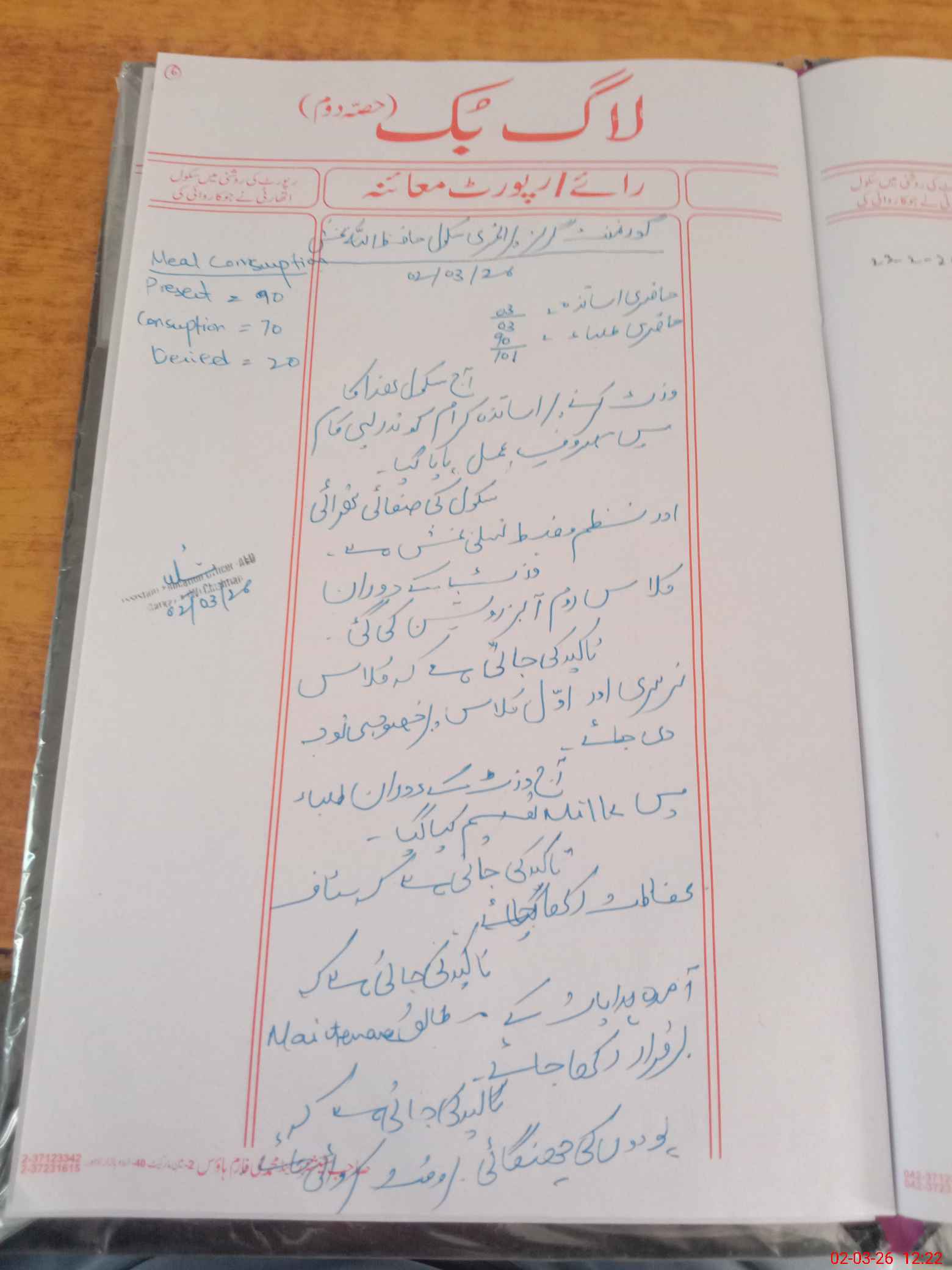 | Certified that this School was Inspected by the Undersigned MEA/DMO Today and the Information Stated Above is as Per Record. | |||||