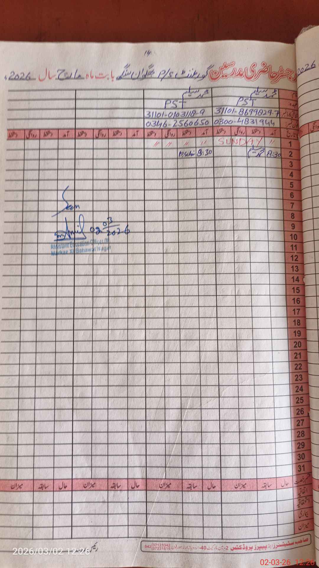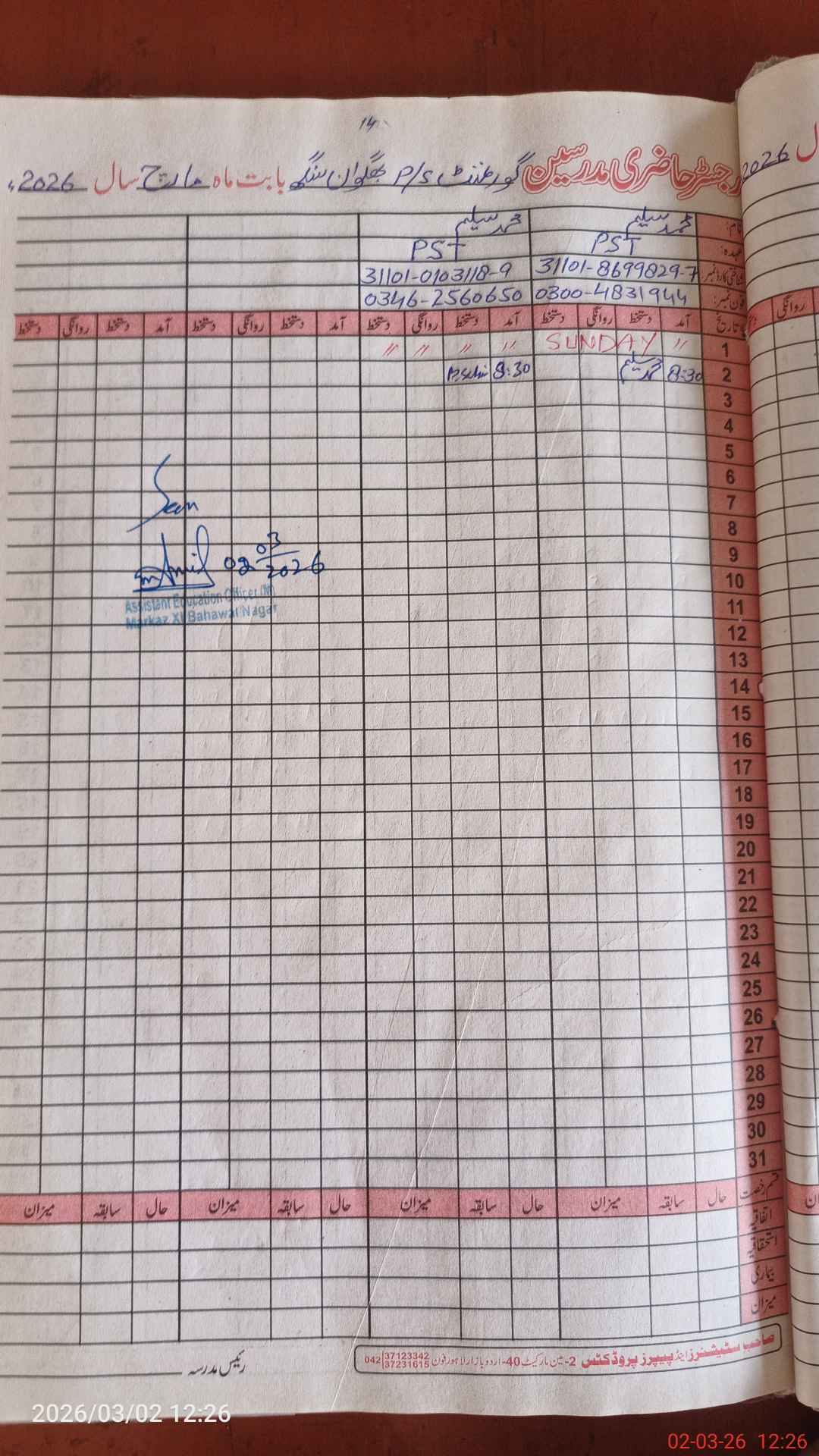 | Name: MU**** YO**** Designation: (School Headmaster's/Headmistress's) PST Phone/Cell Number: 03**** |