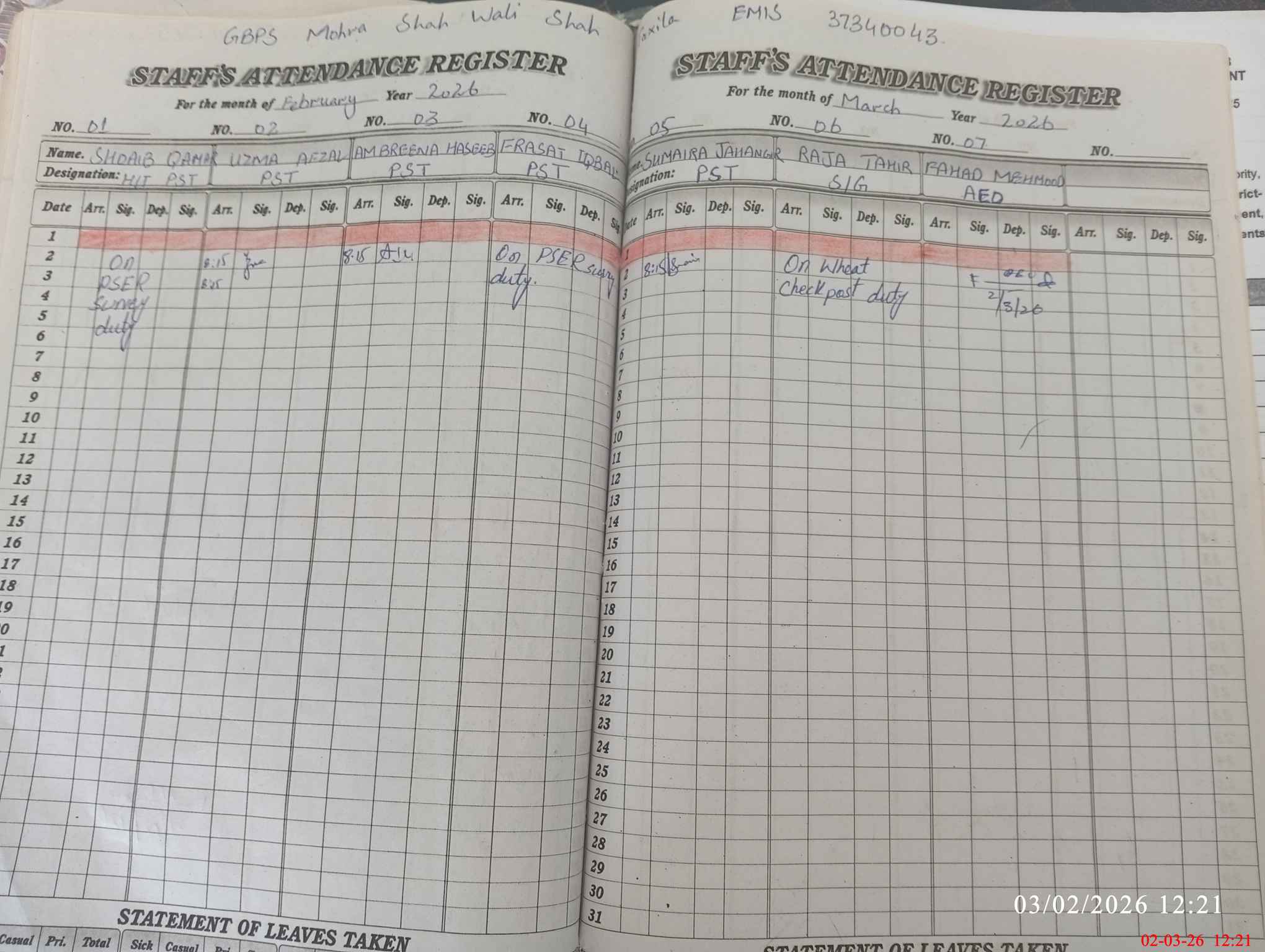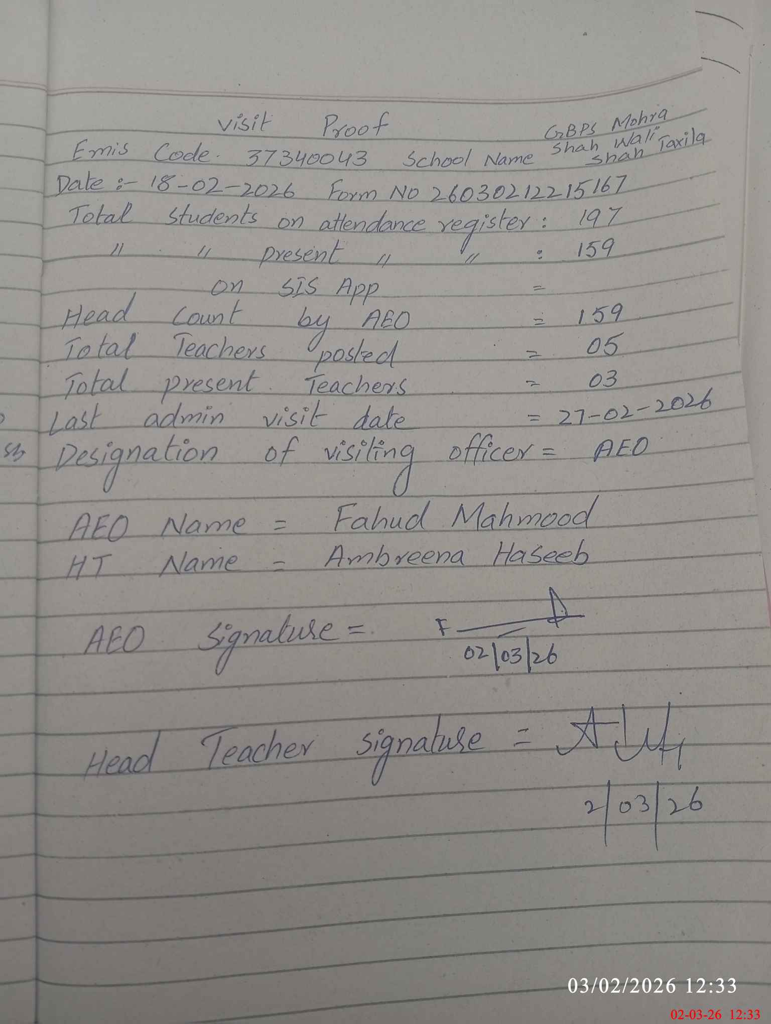 | EMIS Code: 37340043 | Name of School: GPS MOHRA SHAH WALI | |||