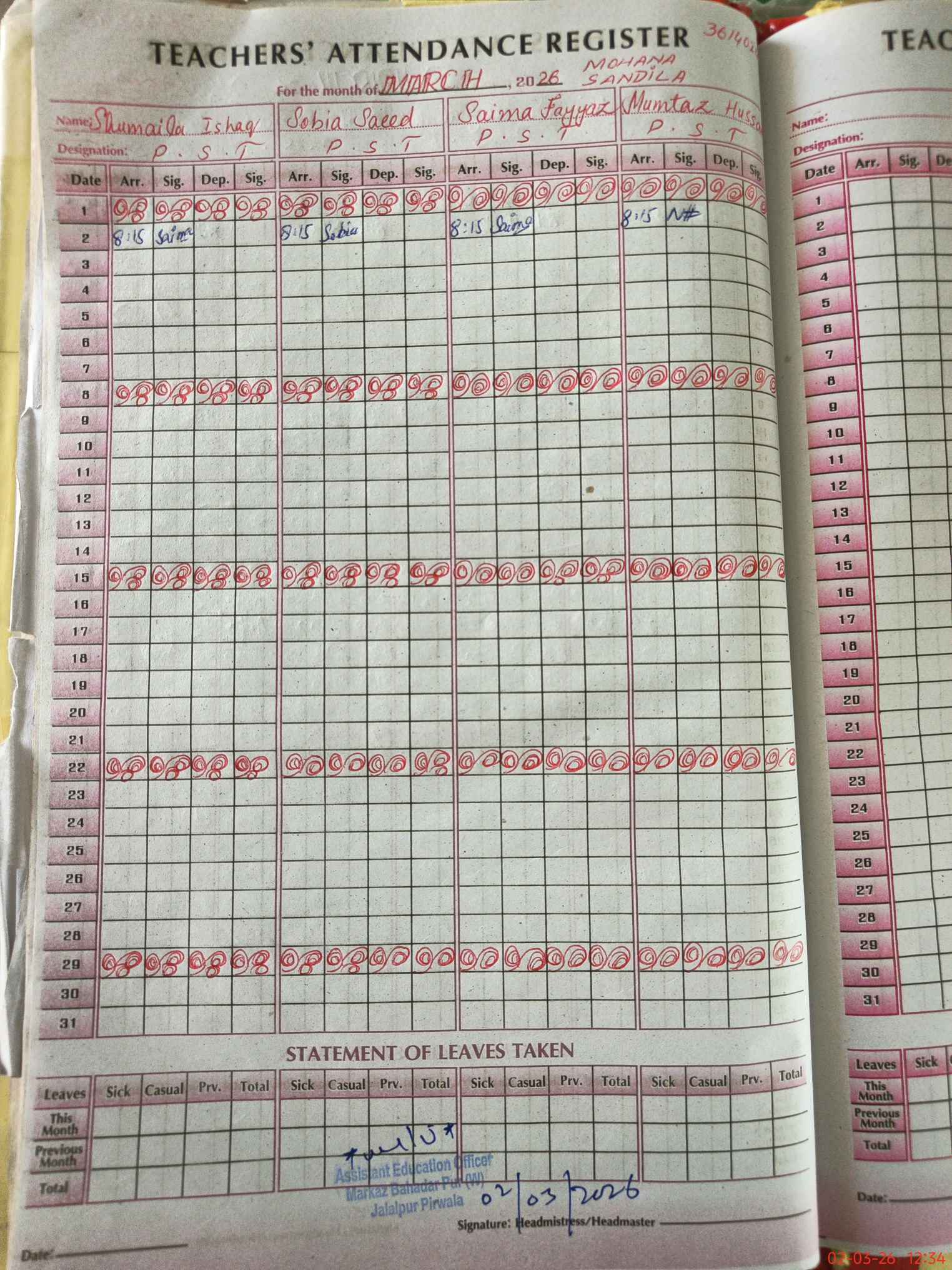 | Attendance Register | Head Teacher | MEA with School | Visit Proof |