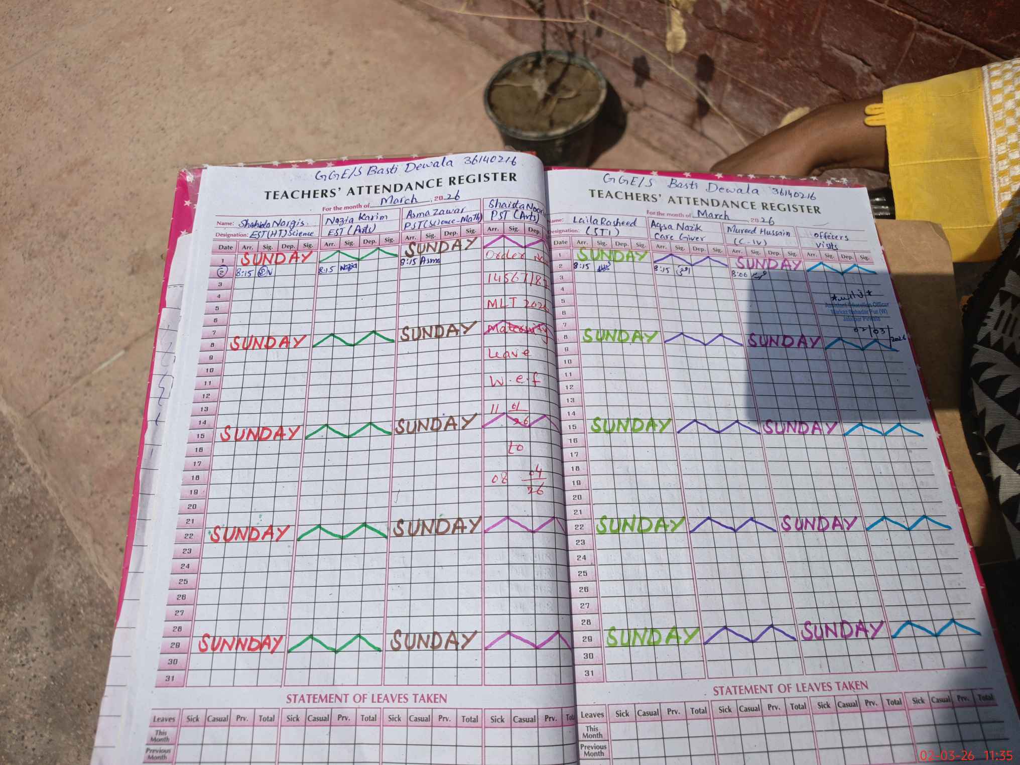 | Leave | Duty | Absent | Maternity | Medical | Ex- Pak |
