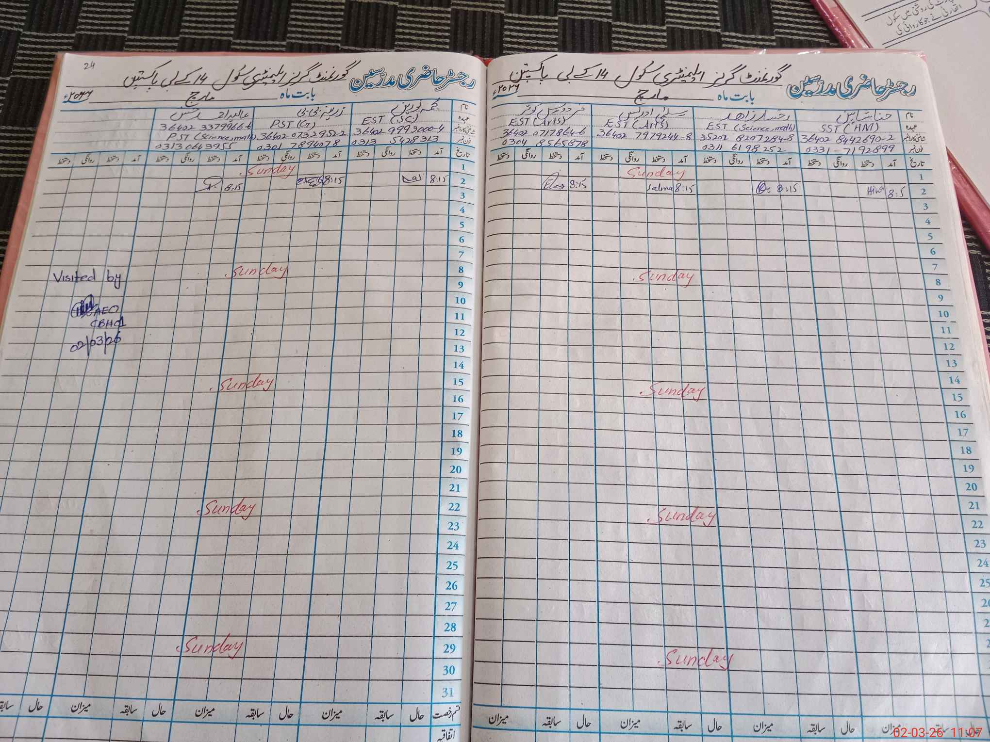 | Name: Hi**** Sh**** Designation: (School Headmaster's/Headmistress's) SST (Sci) Phone/Cell Number: 03**** |