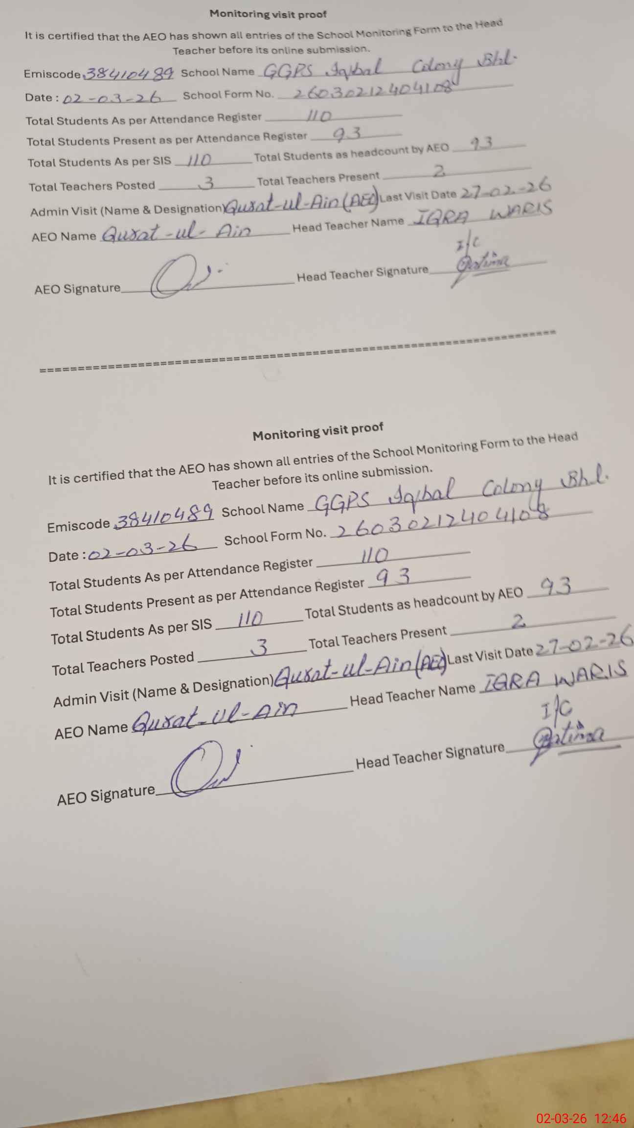 | EMIS Code: 38410489 | Name of School: GGPS IQBAL COLONY BHALWAL | |||