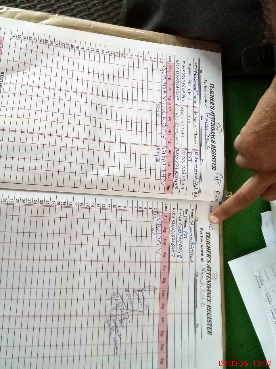| Name: MU**** IM**** Designation: (School Headmaster's/Headmistress's) PST Phone/Cell Number: 03**** |