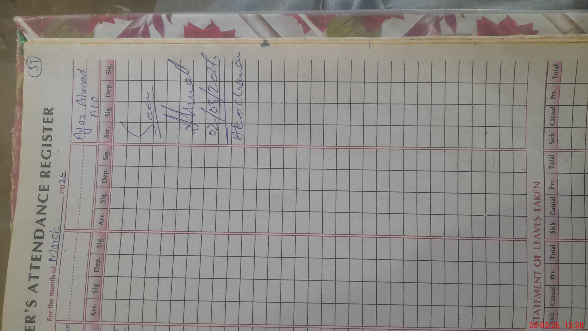 | Name of AEO: | AEO Contact No.: | MEA Phone#: 03**** | ||