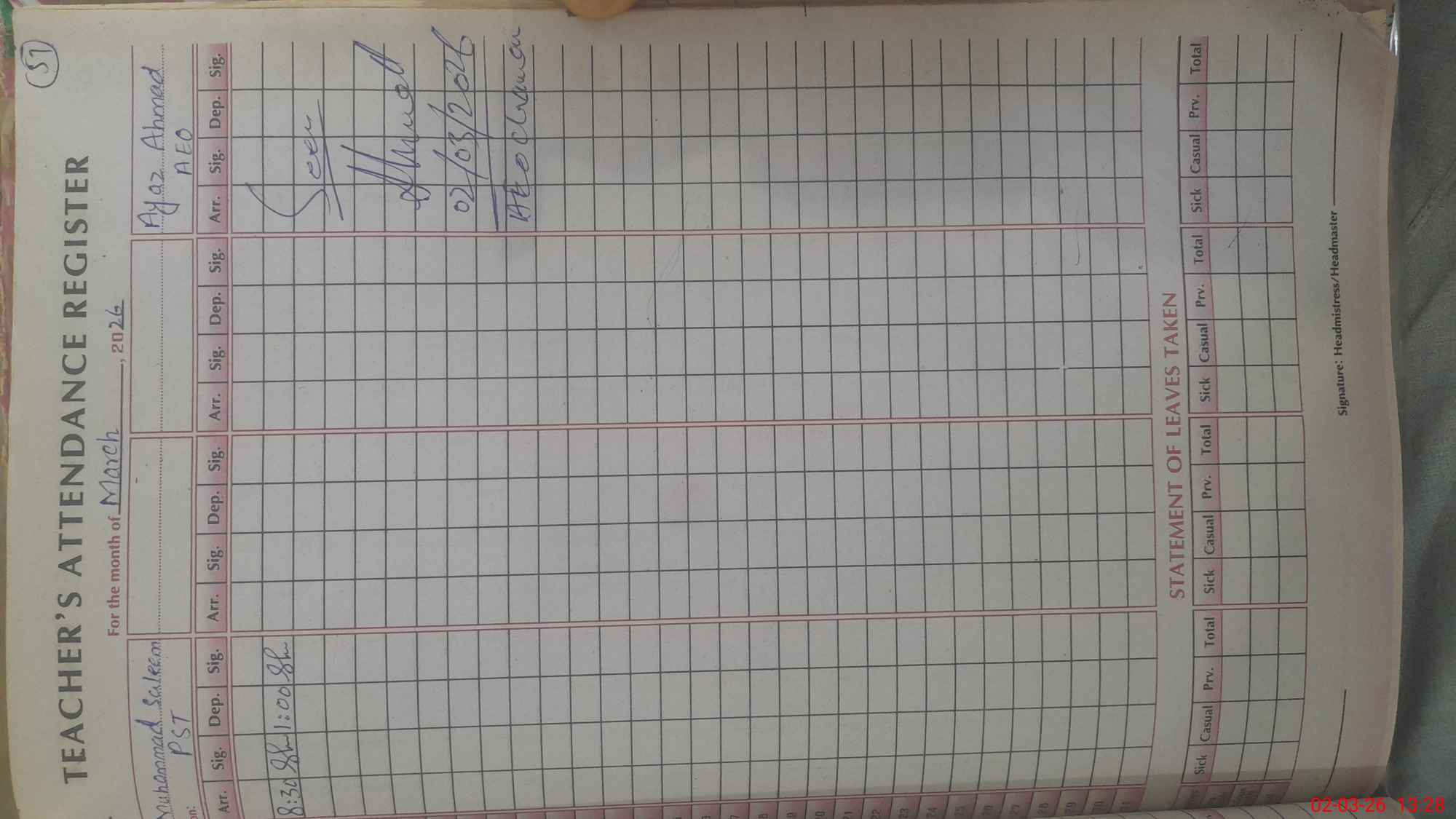 | Attendance Register | Head Teacher | MEA with School | Visit Proof |