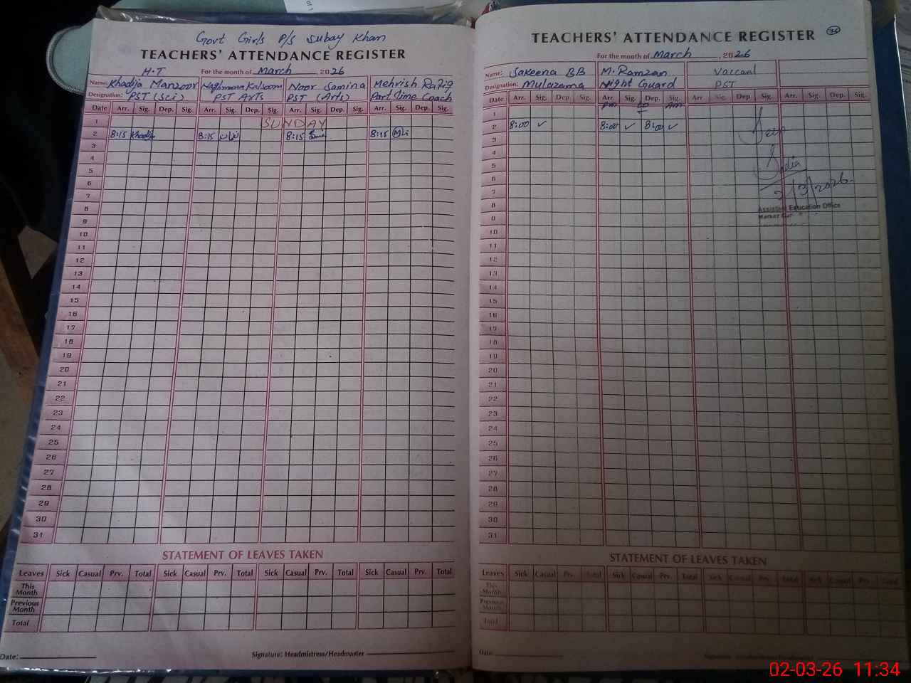 | Name: KH**** MA**** Designation: (School Headmaster's/Headmistress's) PST Phone/Cell Number: 03**** |