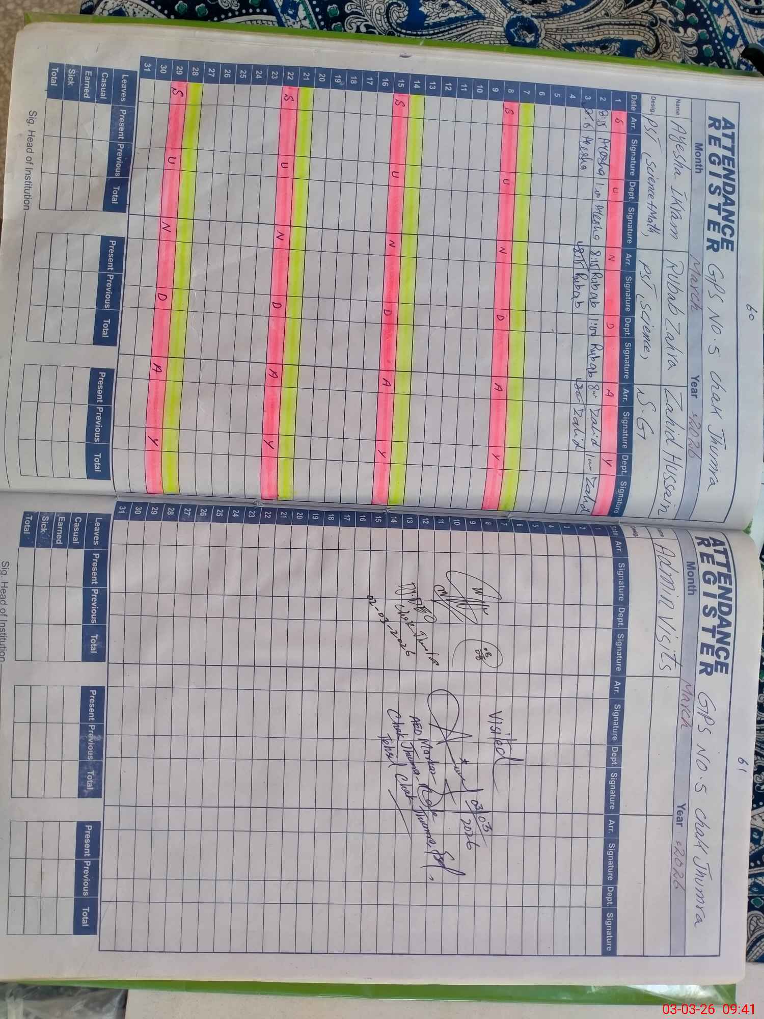 | EMIS Code: 33150114 | Name of School: GPS 5 CHAK JHUMRA | |||