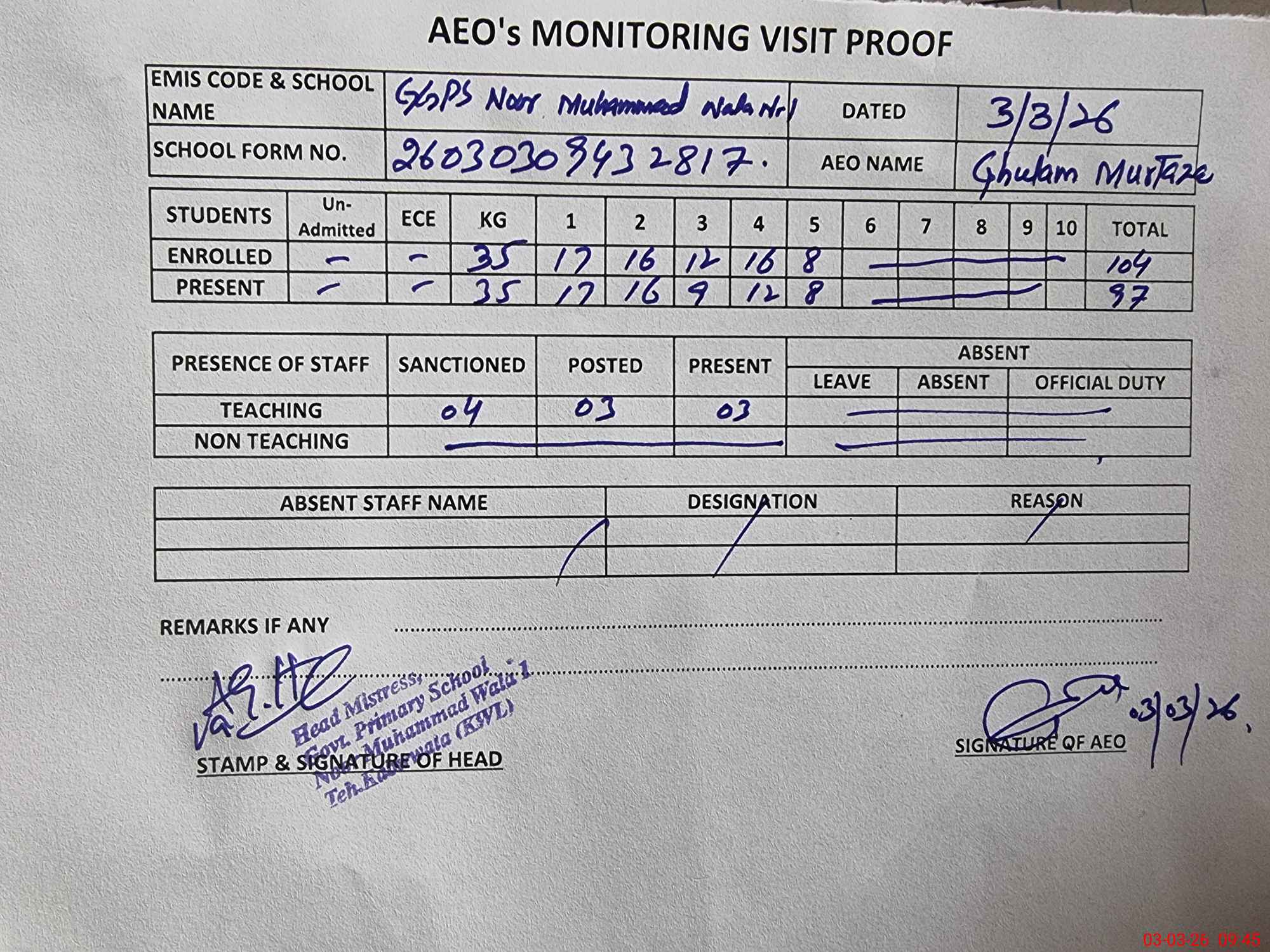 | EMIS Code: 36410381 | Name of School: GGPS NOOR MUHAMMAD WALA NO.1 KABIRWALA | |||