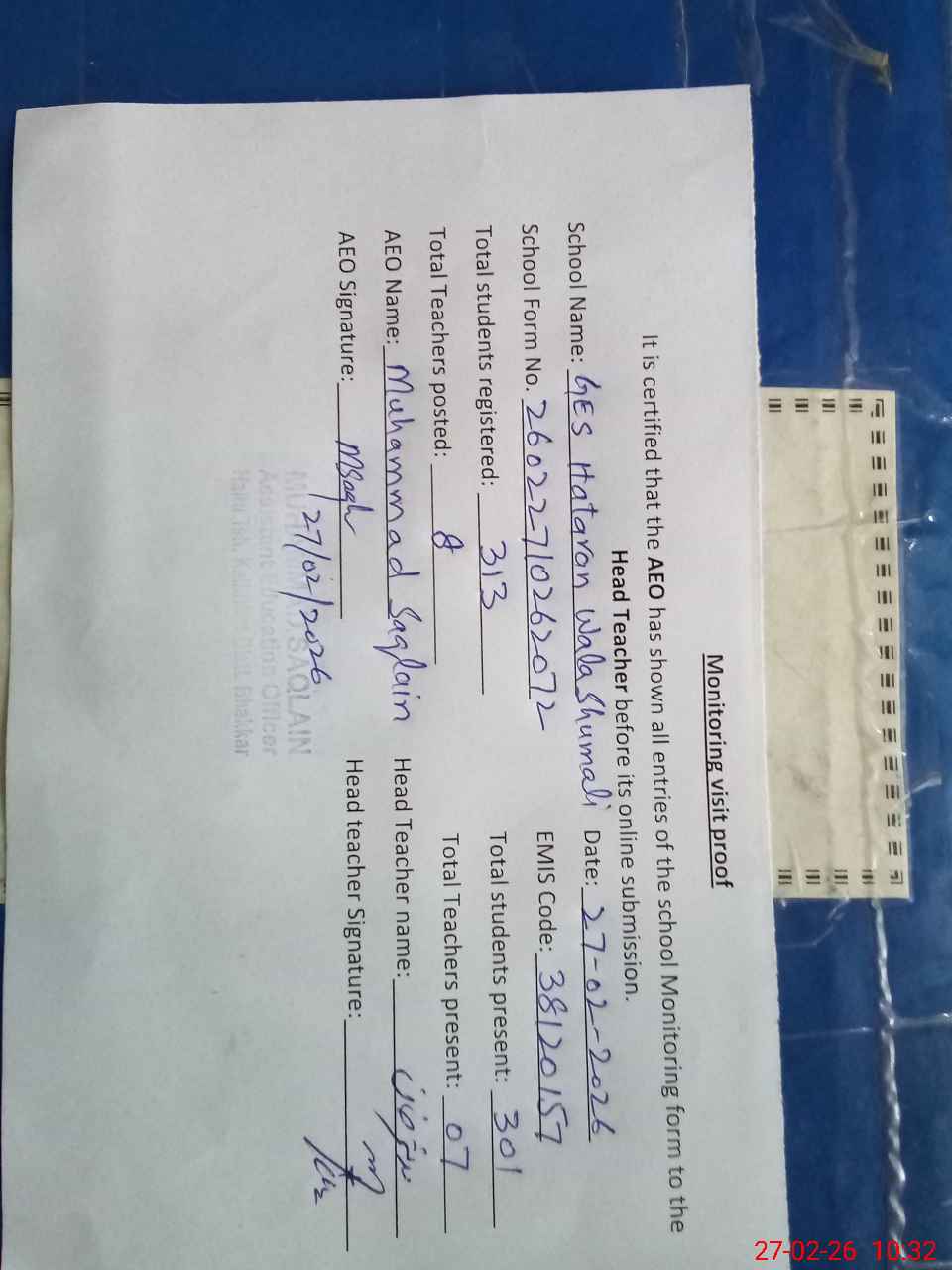 | EMIS Code: 38120157 | Name of School: GES HATTRAN WALA SHUMALI | |||