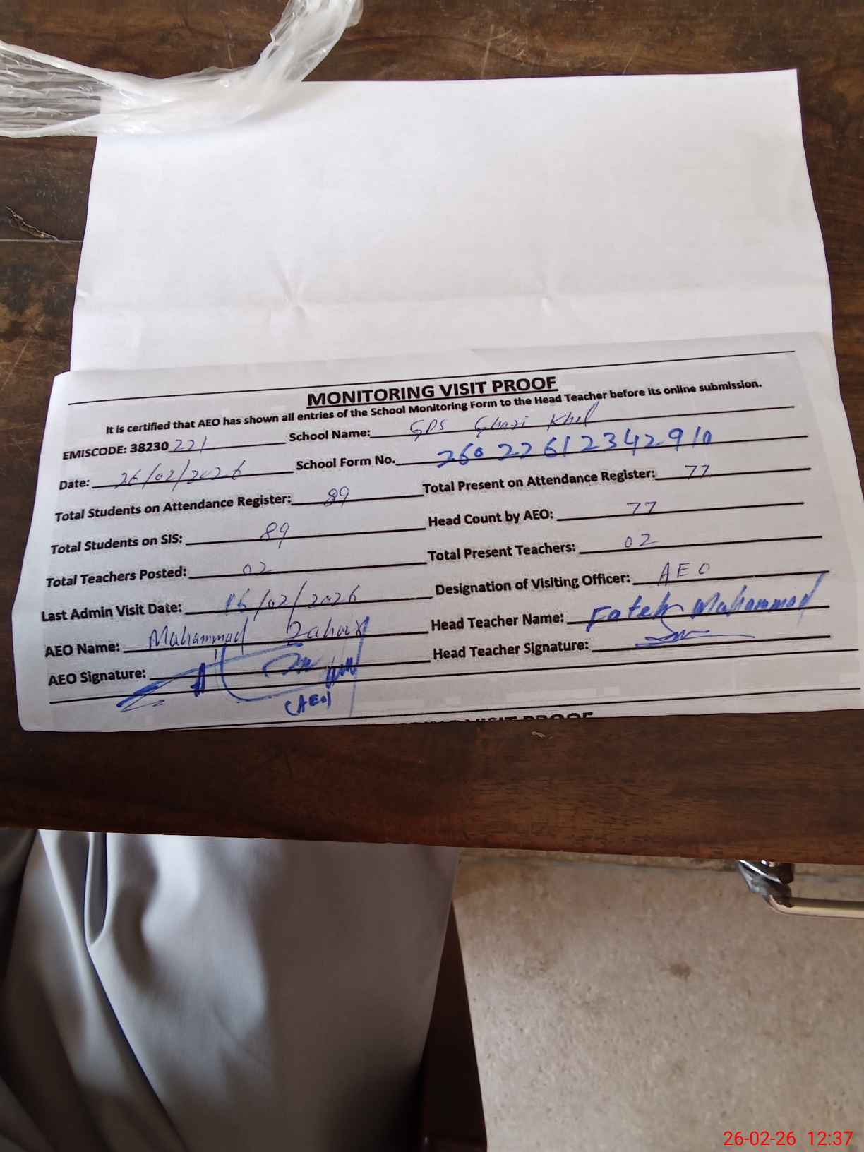 | EMIS Code: 38230221 | Name of School: GPS GHAZI KHAIL | |||