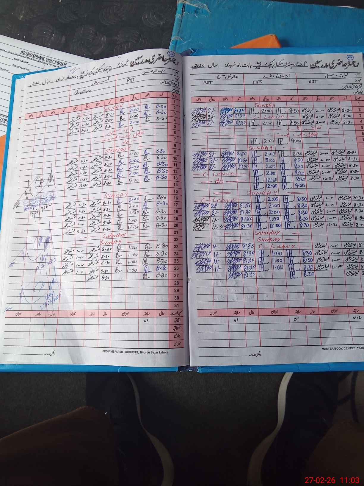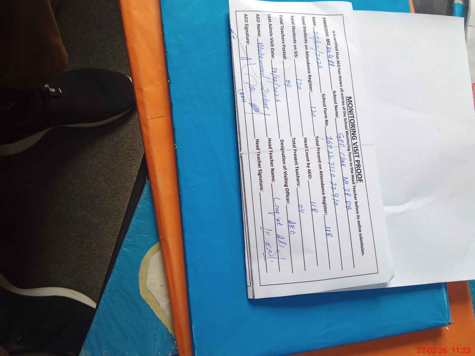 | Attendance Register | Head Teacher | MEA with School | Visit Proof |