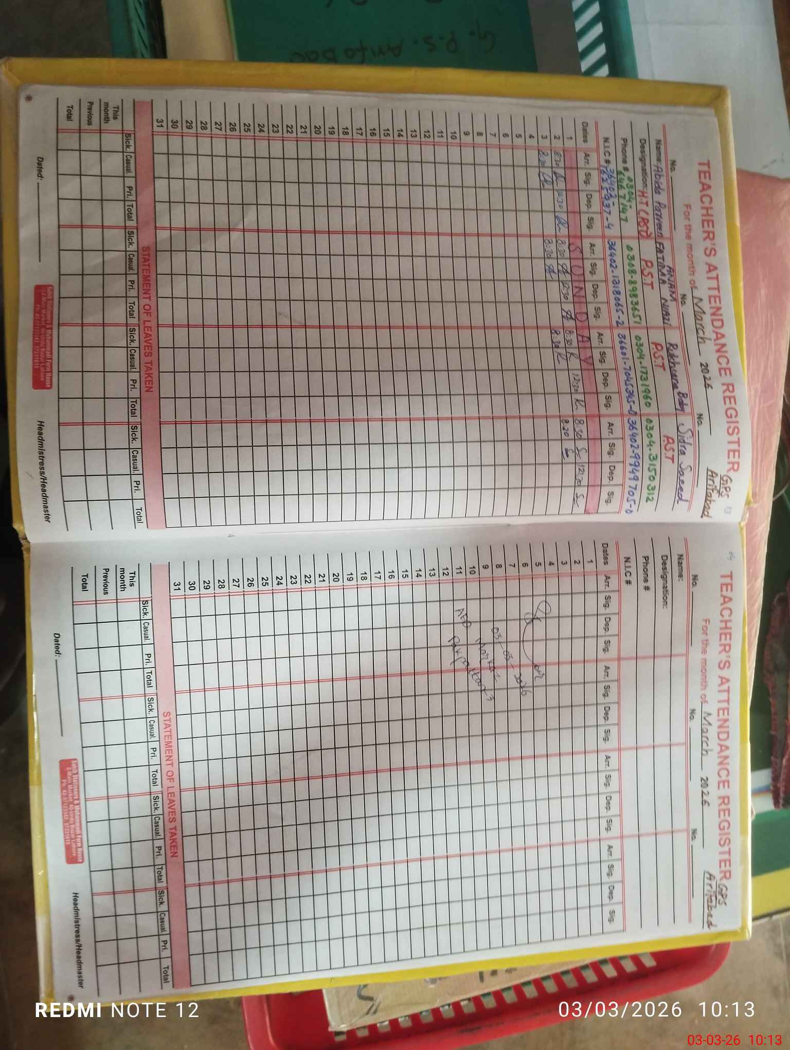 | Name: Ab**** Pa**** Designation: (School Headmaster's/Headmistress's) PST Phone/Cell Number: 03**** |