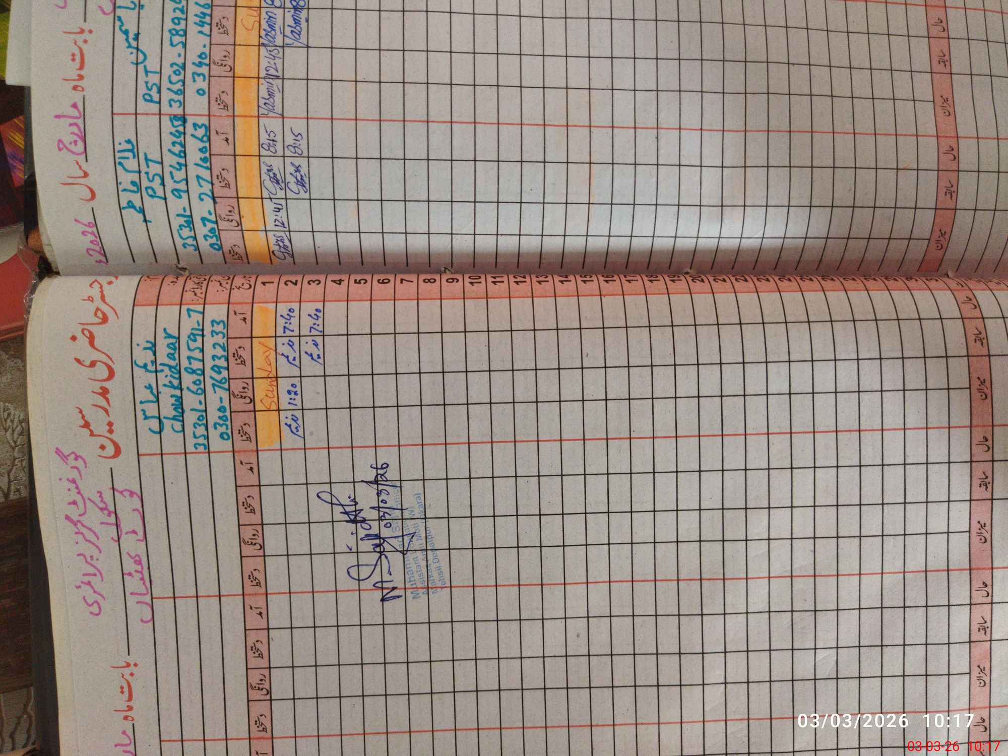 | Name: Ay**** Si**** Designation: (School Headmaster's/Headmistress's) PST Phone/Cell Number: 03**** |