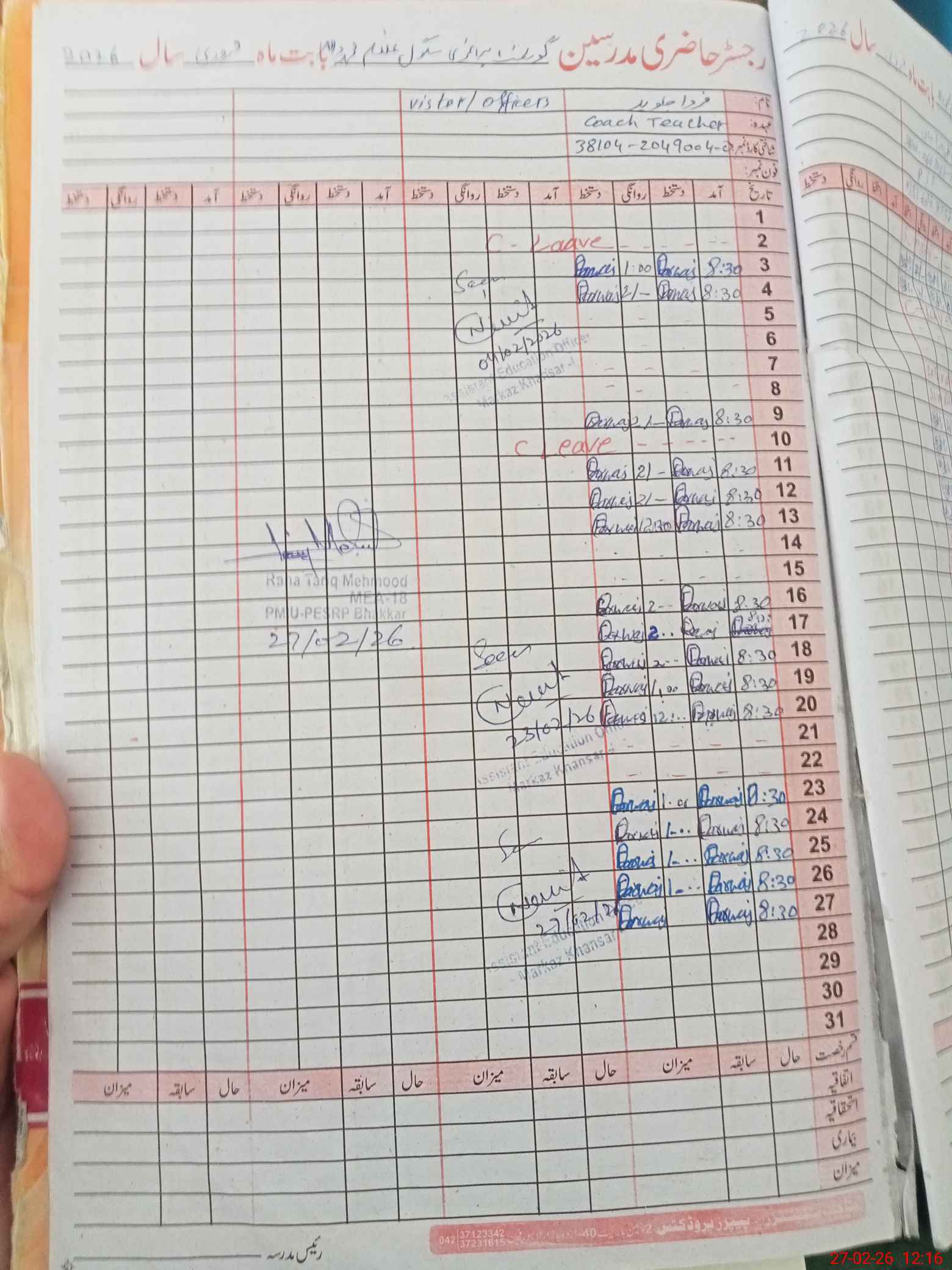 | Name: Gh**** Mu**** Designation: (School Headmaster's/Headmistress's) PST Phone/Cell Number: 03**** |