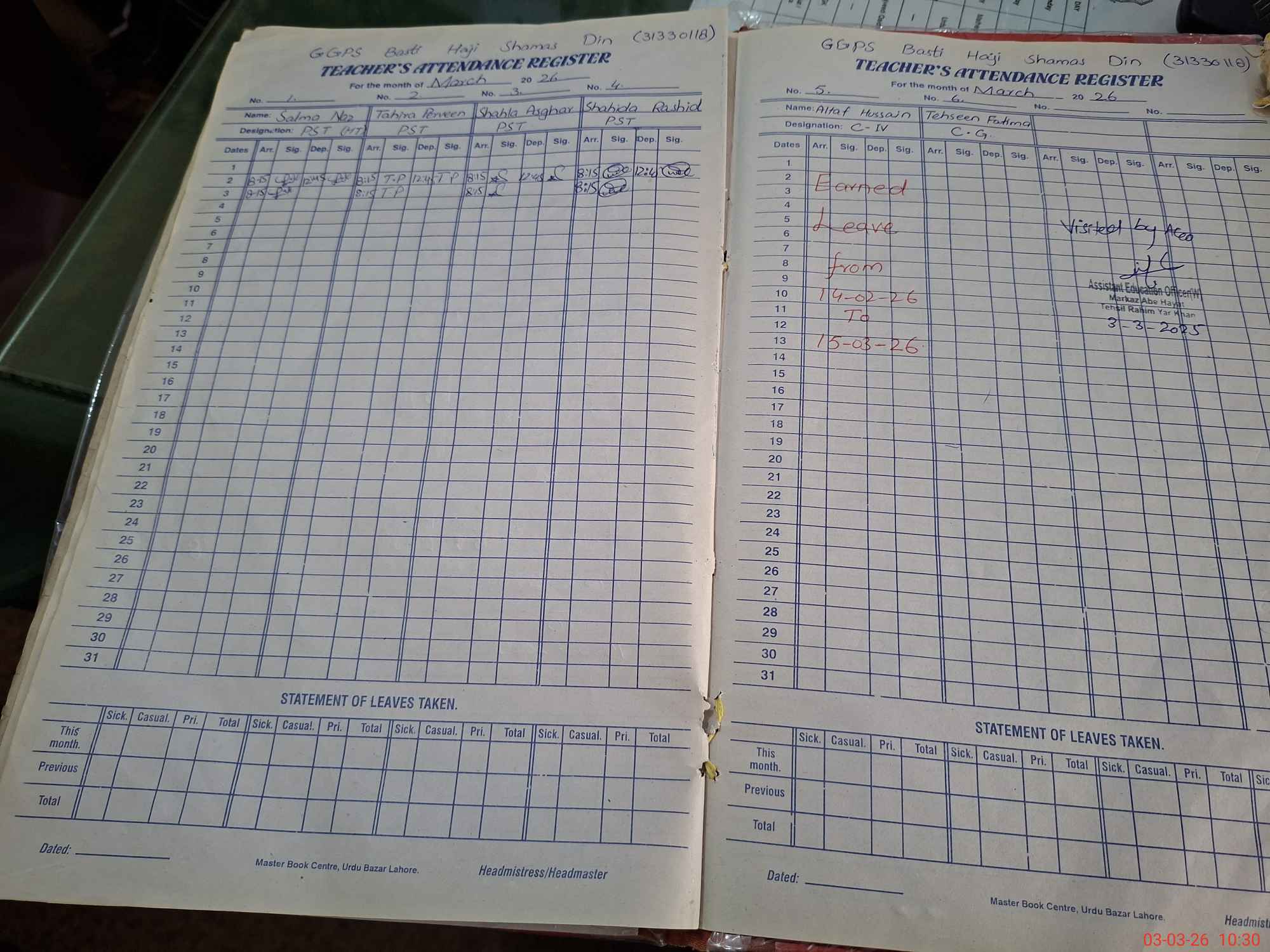 | Attendance Register | Head Teacher | MEA with School | Visit Proof |