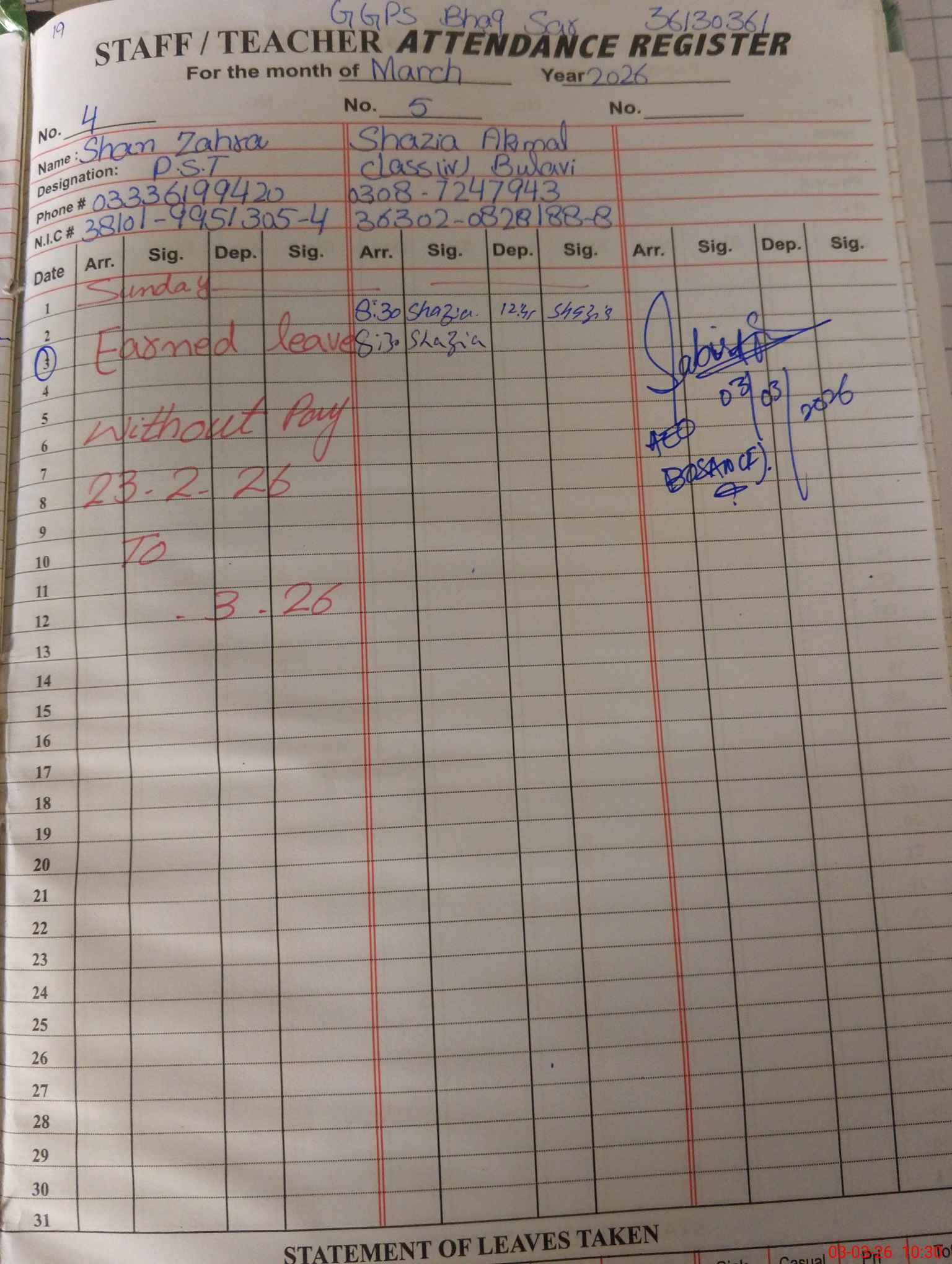 | EMIS Code: 36130361 | Name of School: GGPS BHAG SIR NEAR BAND BOSAN BARSATI MULTAN | |||