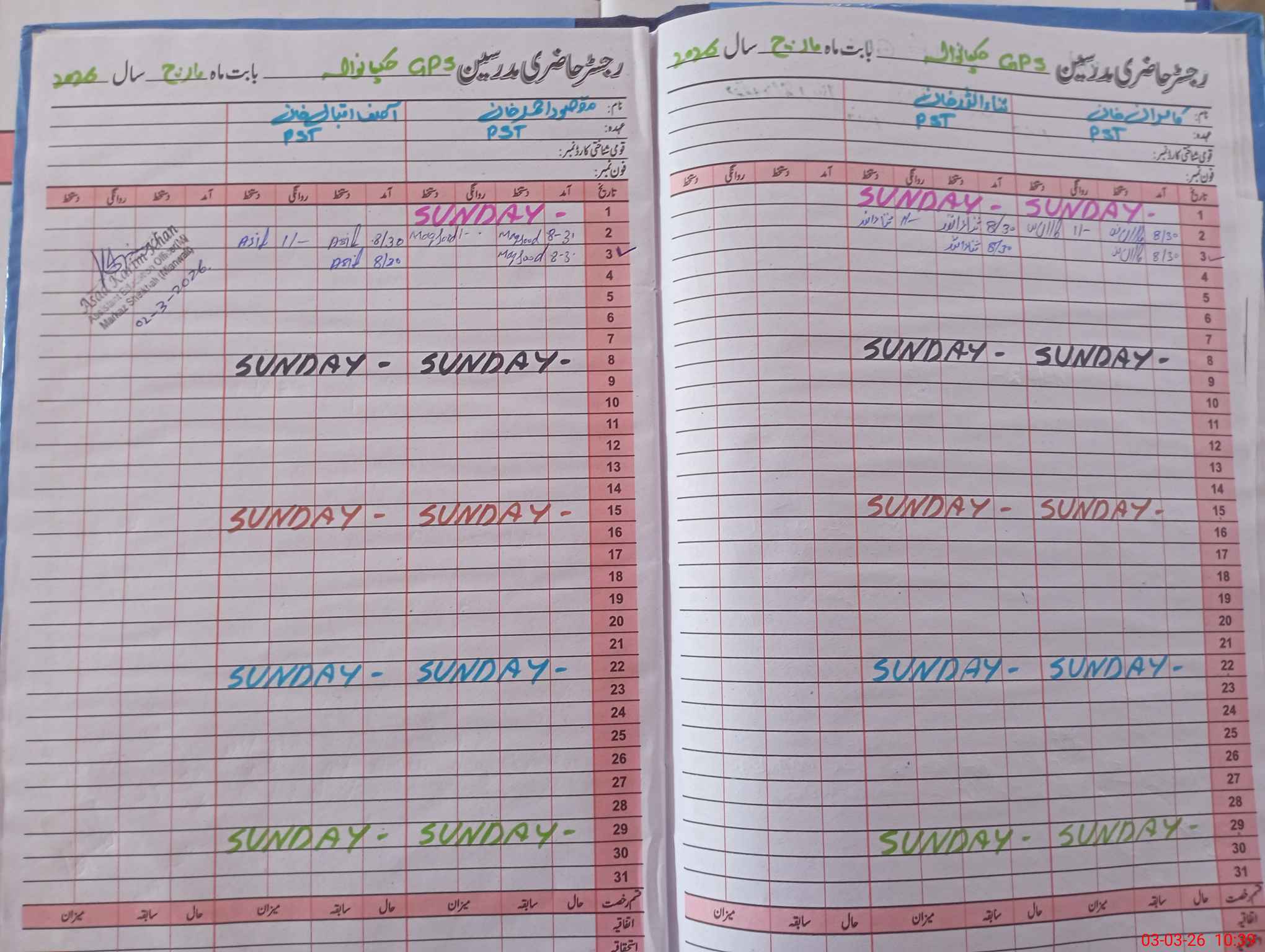 | Name: KA**** KH**** Designation: (School Headmaster's/Headmistress's) PST/PTC/JV Phone/Cell Number: 03**** |