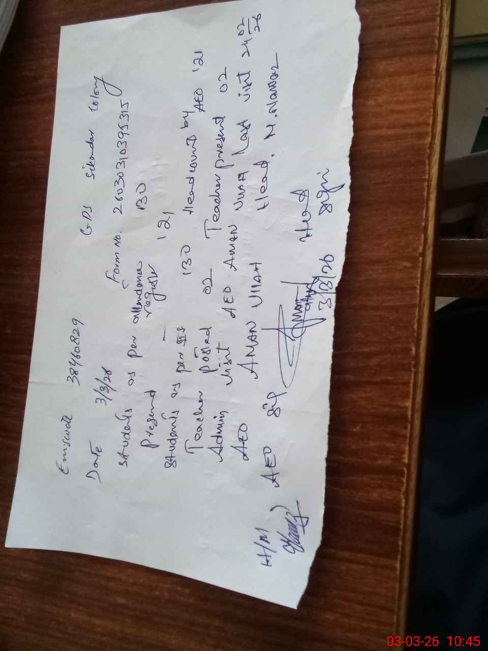 | Monitoring Date: 03-03-2026 | Start Time: 03-03-2026 10:30 AM | End Time: 03-03-2026 10:45 AM | Name of MEA: AM**** UL**** | |