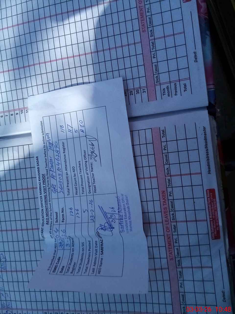 | District: KHUSHAB | Tehsil: KHUSHAB | Markaz: KHUSHAB (SADAR) (MALE) | Level: Primary | |